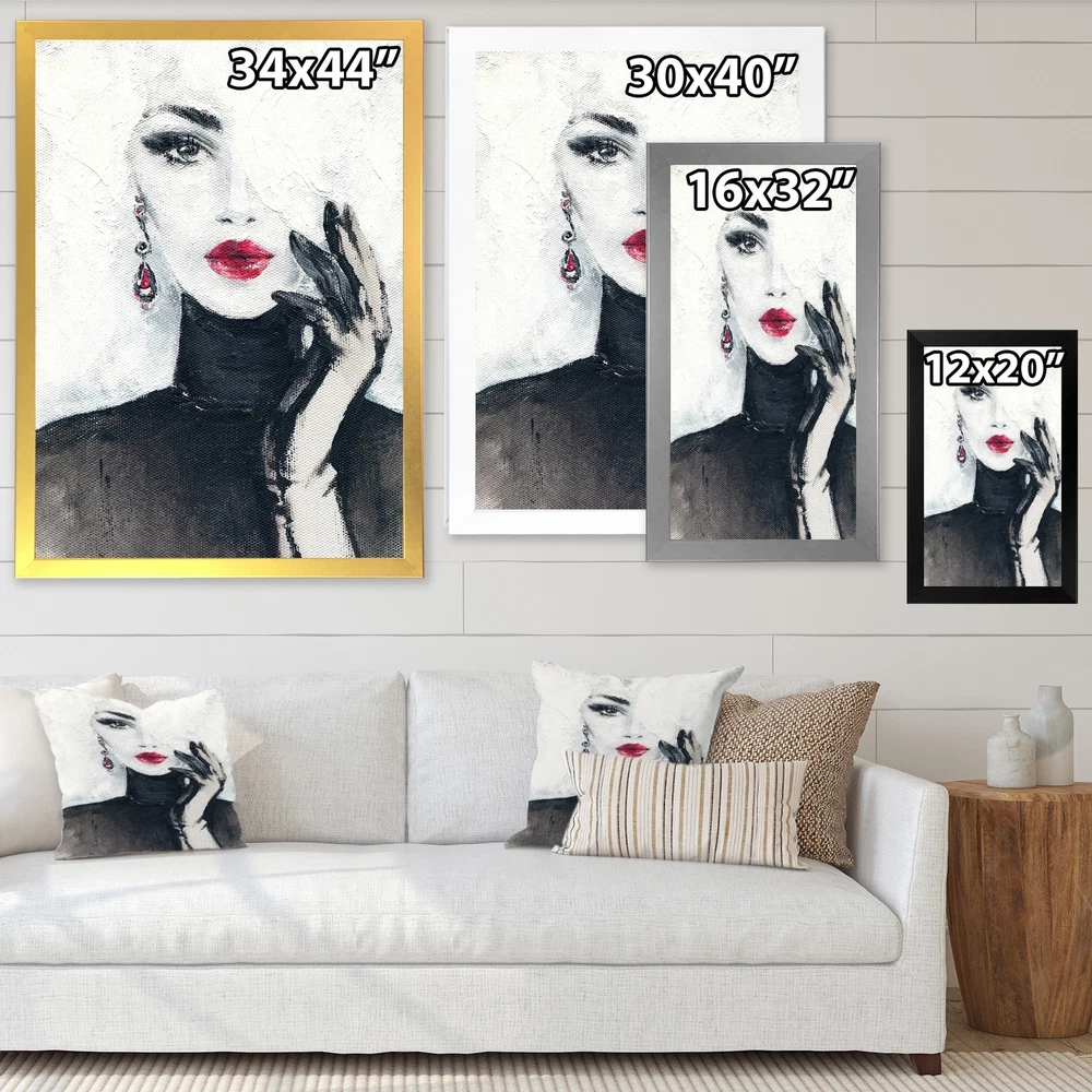 This beautiful White Black Fashion Woman Portrait II Framed wall Art is printed using the highest quality fade resistant ink on canvas. Every one of our Framed Giclee Prints is printed on premium quality canvas, using the finest quality inks which will not fade over time and then mounted and framed on a 1.5 inch wide frame.This framed art print is available in many different color frames. All of our framed art prints are carefully packaged with corner protectors, fragile labeling, and sturdy boxes to ensure a safe delivery. Every framed art arrives ready to hang on the wall, with the hanging kit included.Features:- Style : Glam- Subject : Fashion, People,Fashion,Woman,Women's Fashion- Color : White- Premium quality cotton canvas mounted.- Available in several frame colors. - Arrives with Free Shipping Over $49.99* Details Designart "White Black Fashion Woman Portrait II" Glam Framed Wall Art Product Description: This beautiful White Black Fashion Woman Portrait II Framed wall Art is printed using the highest quality fade resistant ink on canvas. Every one of our Framed Giclee Prints is printed on premium quality canvas, using the finest quality inks which will not fade over time and then mounted and framed on a 1.5 inch wide frame. This framed art print is available in many different color frames. All of our framed art prints are carefully packaged with corner protectors, fragile labeling, and sturdy boxes to ensure a safe delivery. Every framed art arrives ready to hang on the wall, with the hanging kit included. Features: - Style Glam - Subject Fashion, People,Fashion,Woman,Women's Fashion - Color White - Premium quality cotton canvas mounted. - Available in several frame colors. - Arrives with instructions and hanging kit