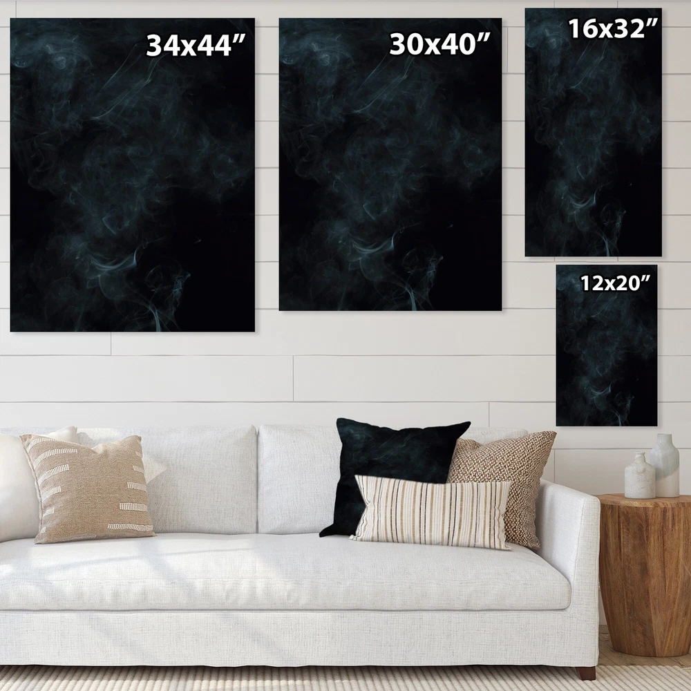 This beautiful Modern Canvas Art is printed using the highest quality fade resistant ink on canvas. Every one of our fine art giclee canvas prints is printed on premium quality cotton canvas, using the finest quality inks which will not fade over time. Each giclee print is stretched tightly over a 1 inch wood sub frame for small size prints or a 1.5 inch wood sub frame for large size prints (40x30 60x28 ...) ensuring the canvas is taught and does not buckle. This canvas art print is gallery-wrapped (the design continues on the sides) , giving it a real art gallery feel. All of our canvas prints are carefully packaged with plastic protection, fragile labeling and sturdy boxes to ensure a safe delivery. Every canvas print arrives ready to hang on the wall, with the hanging kits included.- Free Shipping Over $49.99* Details Designart "White Smoke On Black" Modern Canvas Wall Art Print Product Description: This beautiful Modern Canvas Art is printed using the highest quality fade resistant ink on canvas. Every one of our fine art giclee canvas prints is printed on premium quality cotton canvas, using the finest quality inks which will not fade over time. Each giclee print is stretched tightly over a 1 inch wood sub frame for small size prints or a 1.5 inch wood sub frame for large size prints (40x30 60x28 ...) ensuring the canvas is taught and does not buckle. This canvas art print is gallery-wrapped (the design continues on the sides) , giving it a real art gallery feel. All of our canvas prints are carefully packaged with plastic protection, fragile labeling and sturdy boxes to ensure a safe delivery. Every canvas print arrives ready to hang on the wall, with the hanging kits included.- Style Modern &Contemporay, - Subject Abstract, - Color Black, - This canvas giclee print is gallery-wrapped (the design continues on the sides) , giving it a real art gallery feel.- Premium quality cotton canvas.- Arrives ready to hang on the wall- Easy to Hang