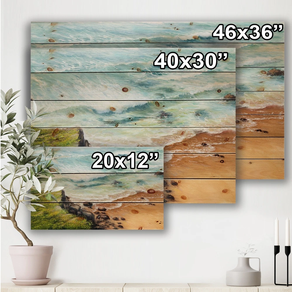 Alas, a modern take on wood wall art. Once typically a wall art piece found only in rustic or farmhouse style decor settings, this Beach wood wall art will easily fit into even the most contemporary of designs.Using the highest quality 6 Color Canon UV Ink, this Nautical & Coastal wood wall art incorporates several aspects of fine design into one stunning piece. With its slightly visible wood grain appearing through the colors and sleekly finished edges, it is a wonderful choice for any room in your home or office, being it a traditional or modern space. As each piece of wood has natural grain differences from the next, each of these wood wall arts is a truly unique addition to your space.Each Wood wall art is 100% handmade in Canada on Natural pine wood, using the highest quality ink Free Shipping Over $49.99* Details Designart 'Wild Blue Ocean Waves IV' Nautical & Coastal Print on Natural Pine Product Description: Alas, a modern take on wood wall art. Once typically a wall art piece found only in rustic or farmhouse style decor settings, this Beach wood wall art will easily fit into even the most contemporary of designs. Using the highest quality 6 Color Canon UV Ink, this Nautical & Coastal wood wall art incorporates several aspects of fine design into one stunning piece. With its slightly visible wood grain appearing through the colors and sleekly finished edges, it is a wonderful choice for any room in your home or office, being it a traditional or modern space. As each piece of wood has natural grain differences from the next, each of these wood wall arts is a truly unique addition to your space. Each Wood wall art is 100% handmade in Canada on Natural pine wood, using the highest quality ink which will not fade over time. Available in Differents sizes - OrientationHorizontal - SubjectBeach TypeWood Wall Art, Fine Art, Wood Fine Art, Print on Plaque - Arrives ready to hang on the wall with hanging kit included - MaterialMade with 100% natural pine wood - StyleNautical & Coastal - Number of Pieces1 - ColorBlue