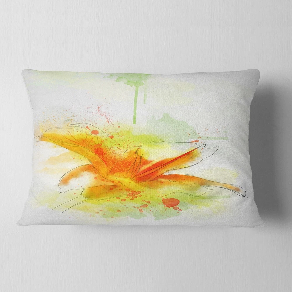 Decorative Throw Pillows for Couch Bed Sofa with Zip CoversAn easy, fun way to add a pop of color or bring new life to any room in your home or office is with these beautiful Floral throw pillows. Dress up your bed, sofa or lounger with this decorative design art pillows. Perfect as Farmhouse bedroom décor, lounge décor Traditional living room décor. It adds a fun accent to any room. Throw pillows really do work wonders: they can transform any room from uninviting discomfort to warm and welcoming. And they really do go almost anywhere - arrange a couple on the couch or sofa, place one in your overstuffed chair for extra coziness, toss a couple on the bed and prop yourself up for a great read.These Floral pillow is printed using High Color Density Italian inks to create a vibrantly colored, Free Shipping Over $49.99* Details Designart 'Yellow Red Flower with Color Splashes' Floral Throw Pillow Product Description: Decorative Throw Pillows for Couch Bed Sofa with Zip Covers An easy, fun way to add a pop of color or bring new life to any room in your home or office is with these beautiful Floral throw pillows. Dress up your bed, sofa or lounger with this decorative design art pillows. Perfect as Farmhouse bedroom décor, lounge décor Traditional living room décor. It adds a fun accent to any room. Throw pillows really do work wondersthey can transform any room from uninviting discomfort to warm and welcoming. And they really do go almost anywhere - arrange a couple on the couch or sofa, place one in your overstuffed chair for extra coziness, toss a couple on the bed and prop yourself up for a great read. These Floral pillow is printed using High Color Density Italian inks to create a vibrantly colored, sharp artwork. Features: Perfect accent to any furniture piece Basic shapes with a modern graphic design twist Printed on 100% light weight polyester Cushion filled with 100% polyester fill Wrinkle resistant fabric Zip Closure so you can remove the pillow from its' cover Down-like comfort - Odorless 100% Hypoallergenic Machine Wash Cold Separately, Gently Cycle Only, No bleach, hang to dry Print on Demand with High Density Italian Ink Available in Several sizes Attribute :Farmhouse, Traditional, Modern Subject Floral, Landscapes, Country Charm