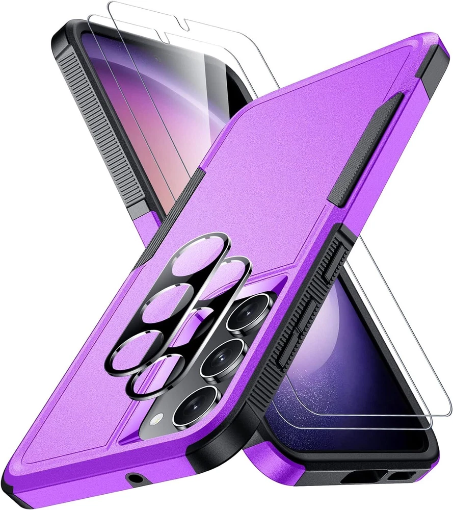 Designed for Samsung Galaxy S23 Case, [10 FT Military Grade Drop Protection], 2 Pack [Tempered Glass Screen Protector+Camera Lens Protector] Heavy Duty Shockproof Case, Dark Purple