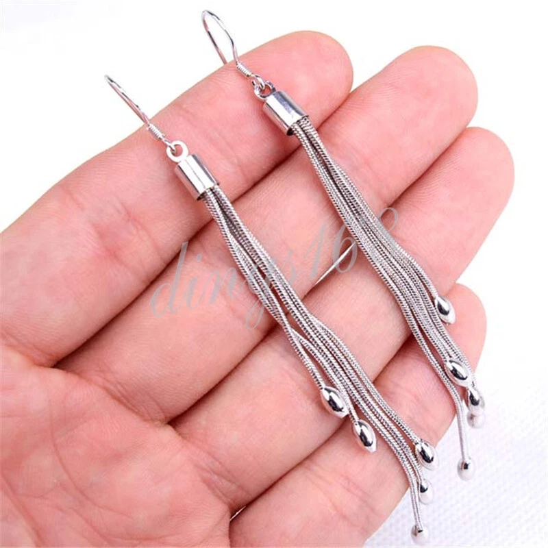This listing is for one pair of designer inspired 925 sterling silver long threader tassels dangle earrings. It is hypoallergenic and waterproof, so you can do your daily routine without having to take it off. This timeless essential is the perfect gift idea for anyone - your significant other, family, friends, or for yourself. Give someone special luxurious fine jewelry to rock from day to night with style. It is covered under our 60-day 100% money-back guarantee. *** Free gift box included. Product ID: H754 Metal: 925 Sterling Silver Color: White Product Dimension: 89 mm * 1.5 mm (3.50*0.06 inch) Weight: 6.29 gram Quantity: One Pair of Earrings Note: *** Please always refer to the description for the measurement of the product. Please do not judge the size based on the picture on your screen. The product may look larger or smaller based on your screen size. 100% Satisfaction Guarantee We offer 100% satisfaction guarantee for all products we sell. If you are not 100% satisfied, you may always return the product for full refund or exchange within 60 days of purchase. Shipping & Payment All orders are shipped through USPS(Postal Office) from our warehouse in California, USA within 24 hours after your payment reaches us. For International buyers: We ship to all countries. We pay all shipping charge in full before your package is shipped. For international buyers, you may be collected an fee when the package is delivered. It's an importing tax that your government charges to protect your domestic business and job opportunities. It's the buyer's responsibility to pay the tax. Contact us The best way to contact us is through eBay message by using eBay's "ask a question" link.