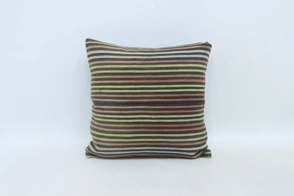 Kilim Pillow Details: All of my beautiful pillow covers or cushion cases are designed and made by me. I am making my throw pillow covers from handmade vintage rugs, Turkish rugs. Therefore, each of my vintage kilim pillowcase is one of kind. These cushions covers are piece of an art. The size of this pillow is 16 x 16 inches or 40 x 40 cm. The front side of this decorative pillow cover, cushion cover is wool on wool vintage kilim rug. The backside of this throw is high quality cotton fabric with a high quality zipper. This listing has 2 option for this handmade pillow. You can choose with insert or without insert. The listing photos is with insert in the pillowcase which is just for demonstration purpose. All of my vintage Turkish rugs have been professionally washed before I cut them as pillow case or cushion case so these kilim covers are 100 posent clean and ready to use. Due to the age and handmade nature of these vintage rugs, there might be imperfections and flaws that are not considered defects. This is a piece of a handmade vintage rug with minor signs of wear consistent with age and use that give it an antique look. You can see the condition of the rug pillow clearly in the detailed photos. I am going to ship your order of decorative pillow as soon as possible. I usually ship in the next day with DHL Express or FedEx which will deliver the kilim pillow, cushion cover just in 3-5 business days. It is my responsible until you receive pillow cover or pillow cover with insert at your door. If the pillow cover or insert get lost or damage during the shipping, I will ship the new kilim pillow cover or pillow insert for free as soon as possible. I take photos of my throw pillows indoor with professional camera which shows the real colors. The photos of these Turkish pillow covers are not altered. Keep in mind the colors of the rug vary slightly in different lights. Please contact to me for additional photos. I take the photos of my vintage rugs outside with daylight to show you the real and natural colors. My photos are not altered. Keep in mind the colors of the rug vary slightly in different lights. Please contact to me for additional photos. SATISFACTION GUARANTEED for your order in my shop. Your SATISFACTION is the most important to me. Please write me if you have any question or if you don't like anything from my pillow covers, cushion covers. If any reason, you are not happy from your Turkish pillow cover, I accept return without any hassle. Please read my shop policies for details. This cushion case or pillow cover can be used as decorative throw pillow, gift pillow, Christmas pillow case, bedding pillow, lumbar pillow, sofa pillow, bohemian pillow, boho pillow. You can find in any kind of Turkish kilim pillow cover in different design such as striped pillow, embroidered pillow, and geometric pillow.