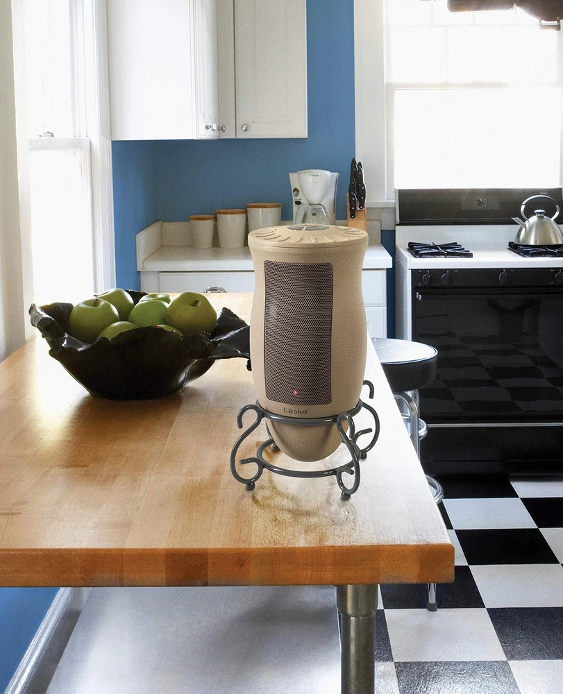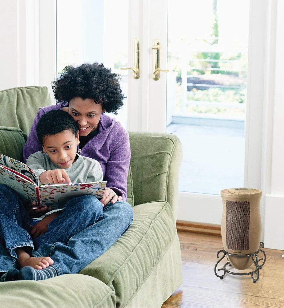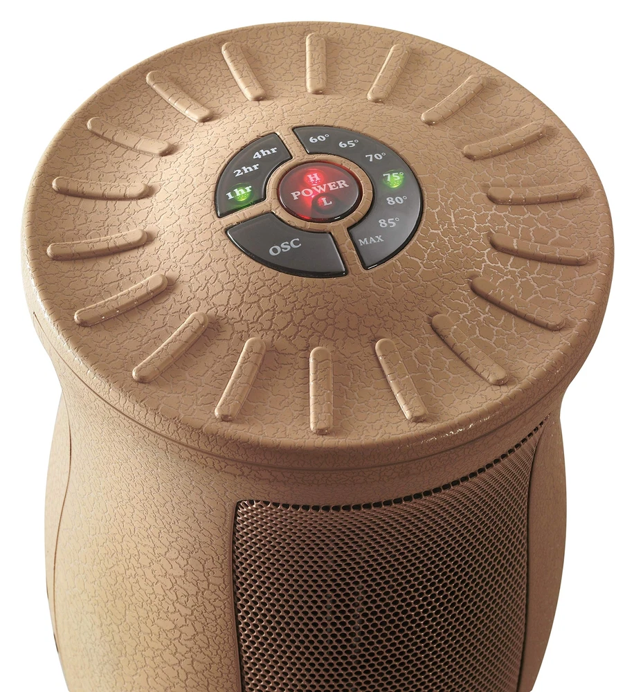 Product Description ’s ceramic heater Designer Series blends beautifully with surrounding décor. The ceramic heater includes thermostat control, oscillation, a timer and remote control. Its convenient size fits where you need it and warms your space quickly, every time. Additional features include: Designed to blend into existing decor 1500 watts of comforting warmth Adjustable thermostat and built-in timer Remote control Brand Story By Blends into Your Decor - with a stylish body and finish this space heater looks more like a piece of art than a space heater. Combined with a powerful ceramic heating element and 3 quiet settings this heater is ideal for around the home Adjustable Thermostat - allows you to adjust the heater's 1500 watt ceramic heating element. With easy to read LED temperature settings you can select temperatures from 60F to 85F or select max heat for maximum warmth Built-in Timer - can be programmed from 1 hour to 7 hours. Simply press the timer button on the digital control panel to easily program the timer in 1 hour intervals. Once the timer is set the heater will automatically shut off after the programmed time Built-in Safety Features - overheat protection ensures the space heater does not overheat even if left on for an extended amount of time. While a cool touch exterior keeps the heater cool to the touch even after running for hours Fully Assembled - allows you to take the heater out of the box and have it working in minutes. Simply plug the heater into a wall outlet, adjust the thermostat, and enjoy the warmth from your new space heater