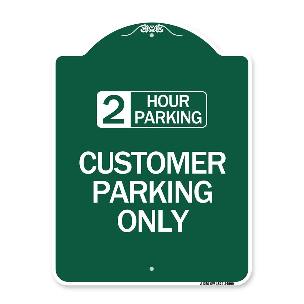 Designer Series Sign - 2 Hour Parking - Customer Parking Only | Green & White...