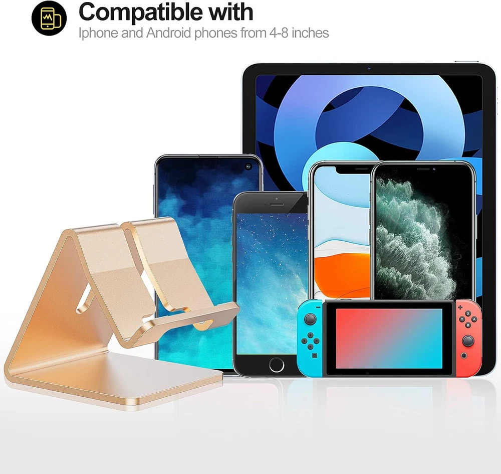 Store New Arrivals Add to Favorite View Feedback Contact Fast deliveries to the customer's home Quality customer service John Make the customers happy! Desk Cell Phone Stand Holder Aluminum Phone Dock Cradle for Iphone 14 13 12 11 Pro Xs Max Xr X 8 7 6 6S plus 5 5S 5C, Office Decor Office Supplies Accessories Desk (Gold) Description Wide Compatibiltity: Compatible with iPhone and Android phones from 4-8 inches, like iPhone 15 14 13 Mini, iPhone 13, iPhone 13 Pro, iPhone 12, 12 Pro, 12 Pro Max, iPhone 11 Pro XS Max XR x 6 6S 7 8 Plus, Huawei, Galaxy S7 S6 S8, Note 6 5, LG, Nexus, although with case. Play a good role in your office, kitchen, nightstand, dining table. Nice office supplies office decor desk decor. Stable and Anti-skid: Made of durable aluminum alloy. Low center of gravity design and Anti-skid pads under the stand make it stable while using your phone on it. Besides, the soft silicone pad on the hook protects your device from scratches and sliding. Suitable Height and Perfect Angle: Appropriate height and perfect viewing angle give you the best experience when you use Facetime and watch YouTube. Perfect for watching videos, viewing pictures and playing games in your home. Hands Free: No need to hold the device all the time. Make your digital life much more convenient in the office, the kitchen, at home or on the dining table. Make Your Life Easier: Using this desktop phone holder at home to prop up your phone, you can better view recipes while cooking. It's also great for on your nightstand, so no more fumbling around in the morning to shut off the alarm. Package contents: Urmust aluminum matte stand*1. Product Description The video showcases the product in use. The video guides you through product setup. The video compares multiple products. The video shows the product being unpacked. Urmust phone stand series Add to Cart Add to Cart Add to Cart Add to Cart Customer Reviews 4.6 out of 5 stars 23,127 4.7 out of 5 stars 1,999 4.6 out of 5 stars 23,127 4.7 out of 5 stars 734 4.4 out of 5 stars 1,667 4.4 out of 5 stars 1,196 Price $9.99 $ 9 . 99 $16.99 $ 16 . 99 $9.99 $ 9 . 99 $14.99 $ 14 . 99 — — Angle adjustable ✘ ✘ ✘ ✔ ✔ ✔ Height adjustable ✘ ✘ ✘ ✔ ✘ ✔ Foldable ✘ ✘ ✘ ✔ ✘ ✘ Fit phone with case ≤0.6 in(1.5cm) ≤0.78 in(2cm) ≤0.78 in(2cm) ≤0.6 in(1.5cm) ≤0.6 in(1.5cm) ≤0.6 in(1.5cm) Compatible with phones and tablets ≤ 9.7'' phones and tablets ≤ 11'' phones and tablets ≤ 9.7'' phones and tablets ≤ 9.7'' phones and tablets ≤ 9.7'' phones and tablets ≤ 9.7'' Other display features Wireless Color A-Gold Form Factor Case Product Dimensions 29.53 x 24.8 x 29.53 inches Country of Origin China Compatible Devices [List of compatible phone models] Item Weight 3 ounces Special features Adjustable Compatible Phone Models function(f) {var _np=(window.P._namespace("DetailPageProductOverviewTemplatesJava"));if(_np.guardFatal){_np.guardFatal(f)(_np);}else{f(_np);}}(function(P) { P.when('A').execute(function(A){ A.on('a:truncate:po-attribute-truncate-4:updated', function(data) { var isTruncated = !data.truncateInstance.getIfTextFits(); var seeMoreElement = document.getElementById('po-attribute-see-more-id-4'); if(seeMoreElement) { seeMoreElement.style.display = isTruncated ? '' : 'none'; } }) }); })); IPhone 15 14 13 12, 12 Pro, 12 Pro Max, iPhone 11, 11 Pro, 11 Pro Max, Xs, Xs Max, XR, X, 8, 7, 7 Plus, 6s, 6s Plus, 6, 6 plus, 5s, 5, Galaxy S9, S8, S8+, S7, S6, S6 Edge S5, S4, S3, Note 5 4, 3, 2, 1, C9 C7 C5 A8 A7 A5 A3 J7 J5 J3, Motorola Moto G Play Z Huawei Honor 5X 6X 8 Mate 9 Mate 8 Asus Zenfone Moto XT1644 ZTE Axon 7 mini P9 P8 LG G5 G4 G3 G2 v10; HTC One M9, M8, M7, Max, Nexus 6, 6P, 5, 4, Sony Xperia Z3, Z2, Z1, Google Pixel Nokia Microsoft Lumia BlackBerry See more Is Discontinued By Manufacturer Yes ABOUT US We offer the best prices around on high quality products. Our E-store includes media such as books, movies, music and games while offering electronics, toys, sporting apparel, clothing, tools, general home, garden items and more. SHIPPING We are always working hard to ensure your package arrives as soon as possible. Please understand that some factors like weather, high postal traffic, and the performance of shipping companies are outside of our control. We offer free shipping to the lower 48 states and ship within 2 business days of payment, usually sooner. We do not accept P.O. Boxes. Please provide a physical address. For shipping outside of the continental USA, we only use eBay's Global Shipping Program. The item is shipped to KY and then sent to the rest of the world. International customers are responsible for all duties and taxes. Continue to 'check out' to calculate costs for shipping the item to your country. Messages regarding eBay's Global Shipping Program MUST be directed at eBay EXCLUSIVELY. RETURNS We offer a 30-Day Return Policy on items in which you are not completely satisfied with. You have the option of a full-refund or an exchange of the item. No returns are available on items shipped outside of the USA PAYMENT We accept PayPal. CONTACT US This page content is yet to come Please ad us to your favorite seller and visit again later Thank You CUSTOMER SATISFACTION We try our very best to make sure every customer is completely satisfied. If there's a problem, message us! We're happy to help. WE ACCEPT