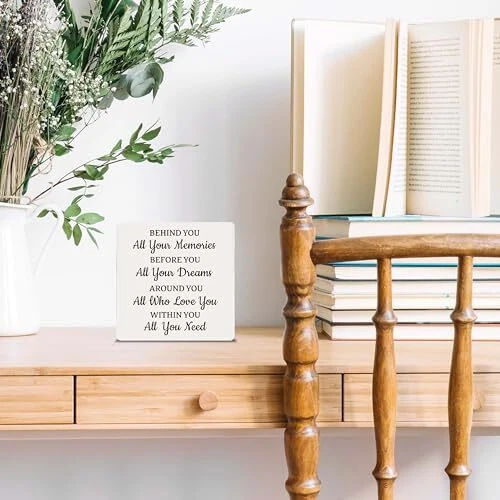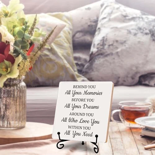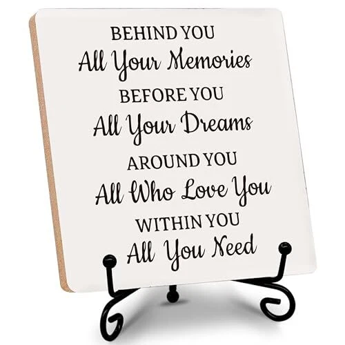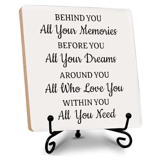 Return Policy Fast Delivery Trusted seller Desk Decorations, Wood Plaque, Motivational Gifts for Friends, BFF, Family, Children, ‘Behind You All Your Memories’, Favors for Birthday, Anniversary, etc., Graduation Gifts, Farewell Gifts. (001) Product Description -The Best Choice for Gifts: You can take this wood plaque as a gift to yourself, and also could gift to your family, friends, colleagues, etc. Our products is perfect to be the best gifts for birthday, valentine’s day, thanksgiving, Christmas, Anniversary, etc. -Delicate Decoration: The wood plaque could be seasonal decoration, daily home decor. This delicate plaque is an ideal decoration for your home, dorm, bedroom, bathroom, living room, classroom, office, Café, etc. -Plaque Size: The wood plaque measures 5.1 x 5.1 inches and 0.23 inches deep. Each pack have 1 set of a wooden plaque and a iron stand. It is easily to be assembled. -Widely Use: It can be placed on desks, bedside table, dining table, shelves, fireplace mantelshelf, windowsill, etc. -Exquisite Design: We design the brilliant product through combining the meaning of the content with the length of the sentence and the unique fonts. Our product carry deep meanings and sentimental value, which could bring cherished memory between you and the recipient. Shipping Returns Payment Shipping Shipping is FREE to all addresses other than APO/PO boxes in the lower 48 states. All our stock ships from US-based warehouses. Shipped via USPS or UPS (depending on location and package weight) Unless stated otherwise, all orders will ship within 24-72 hours of your payment being processed. Check our feedback to see the great reviews of FAST shipping we offer. Returns Seller does not accept returns Payment We currently accept payment via eBay managed payments only. Once payment is cleared, we will dispatch your shipment within 1-3 business days. Please refer to the "Shipping" tab for more information regarding shipping speed to your destination.