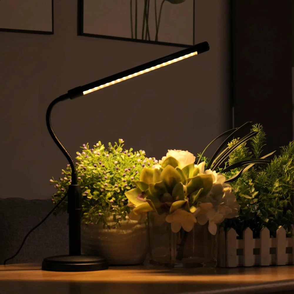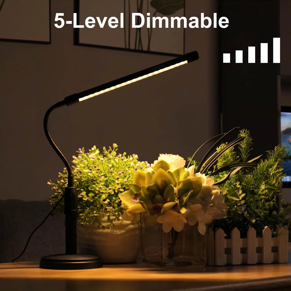 3500K Sunlight Full Spectrum- The grow light , just like natural daylight, professionally designed for flowers, herbs, peppermint, succulents, seed starting, or any type of locations (hanging, trellis, floor, potted, bonsai plants). SAVE YOUR DARK INDOOR PLANTS with IT ! 3500K Sunlight Full Spectrum - The Desk grow light just like natural daylight, professionally designed for flowers, herbs, peppermint, succulents, seed starting, or any type of locations (hanging, trellis, floor, potted, bonsai plants). SAVE YOUR DARK INDOOR PLANTS with IT ! Home Garden Lighting - The grow lights for indoor plants kit is tuned to the specific needs of plants to maximize photosynthesis, the best gift for gardeners and planting enthusiast. It's color rendering index up to 96%, can also be used as work/reading lamp. High Efficiency LED Lamp - Ours plant plant light with 5 levels dimming, free to choose the most suitable brightness for your plant growth. Save electricity while also ensuring the light needs of plant growth. This led grow light can be set up to turn off after 2H/ 4H/ 8 H ,TAKE CARE OF YOUR PLANTS EVERY DAY 360° Gooseneck & Easy to Use - This artificial light with flexible thickened goosenecks can easily rotate to adjust the angle between the lamp and plants. Height Adjustable Min 13-Max 18 Inch ,60 inch USB cable makes it easy to use at home/office ect . Unique Practical Design: The plant light with a tape base .The plant light for indoor plants small, no extra space is needed, perfect solution for office desk, plant shelf , living room, dark corner in house, doesn’t take up valuable space, they just fit in with decor.
