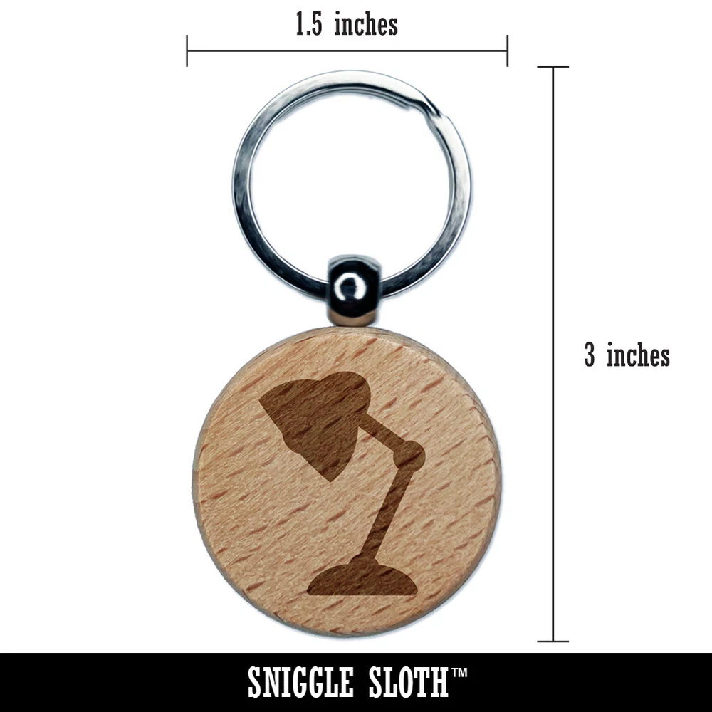 Desk Lamp Engraved Wood Round Keychain Tag Charm