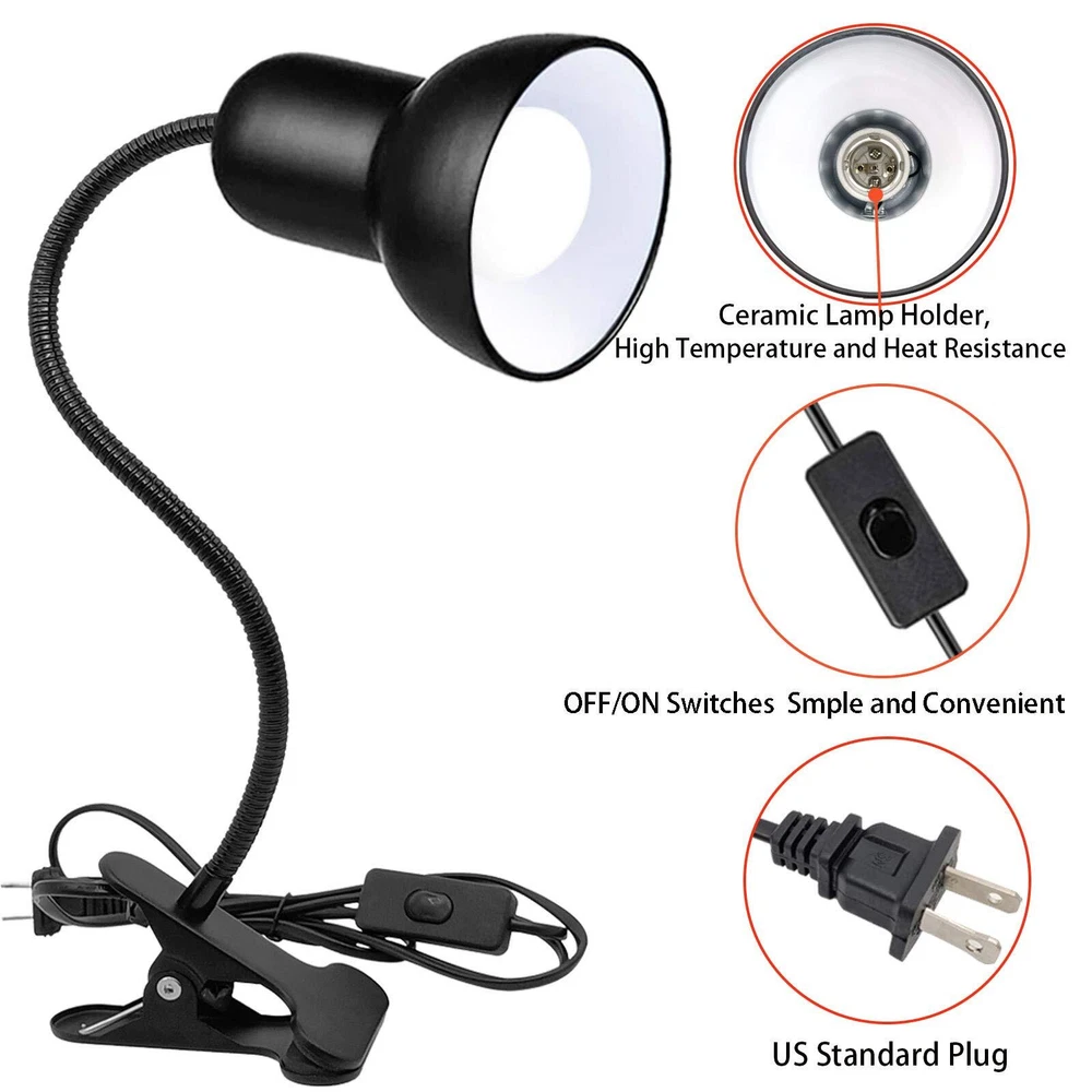 Reading Lights for Books in Bed, Clamp Lamp for Bed Clip On Reading Light Features:Book Light for Reading in Bed at Night: The reading lamp is a comfortable light that can bring you a warm and comfortable feeling. Excellent lighting quality: Desk Lamp with Clamp Base and Adjustable Gooseneck, The 15-inch 360 flexible gooseneck light allows you to easily bend and set the ideal lighting direction and viewing angleThe reading lamp is made of high-quality Metal, with good heat dissipation and distortion resistance, uniform brightness, no flicker, no glare, and eye protection.It is very suitable for reading, painting, work, and study.The lighted clip is easy to clip on the workbench, desk, headboard or other objects.The sturdy clip with foam pad protects the surface of the furniture from scratches, and the base can be stably placed on your table. On/Off Switch Material: Metal + Ceramic lamp BaseCable: 68.9 Inch GooseNeck: 15 Inch Maximum width of clamp: 2 Inch More than 50000 Hours working life can be consistently applied to your daily life and work. Adopt eco-friendly aluminum heat-dissipating lampshade, low power consumption, no heat,and it consumes 80% less power than traditional lights.E26/E27 light source (Do not contain light bulb, It is recommended to use a mini light bulb). Energy Efficiency: 110V working voltage, More than 50000 Hours working,Adopt eco-friendly heat-dissipating lampshade, low power consumption,and it consumes 80% less power than traditional lights. It is recommended to use LED bulbs of no more than 25W(bulb not include,Please buy separately) 360 Degree Flexible Gooseneck: 12 inches universal black gooseneck metal tube, 360° rotating Minimalistic design, Durable flexible gooseneck allows you to adjust your clip light with ease and to direct the light wherever you want. The table lamp will show you the best perspective Eye-Caring: Not-ghosting and not-flickering light, the book light won't make eyes fatigued even staying in the light for a long time. Designed to help those who read and work hours a day to protect eyesight and reduce eye strain. Study and work clip lamp: The clip on reading lamp is easy to clip on your desk, bed headboard or other objects. It can stand stably on your table. Good for home, office, school, hotel, For computer or writing desk, bed side table, For homework, study, book reading, reading lights for books in bed.Great Gift for kids bookworms. : : We are always committed to providing high quality and best service status. If you have any questions about the light fixtures, please tell us know and we will reslove it.