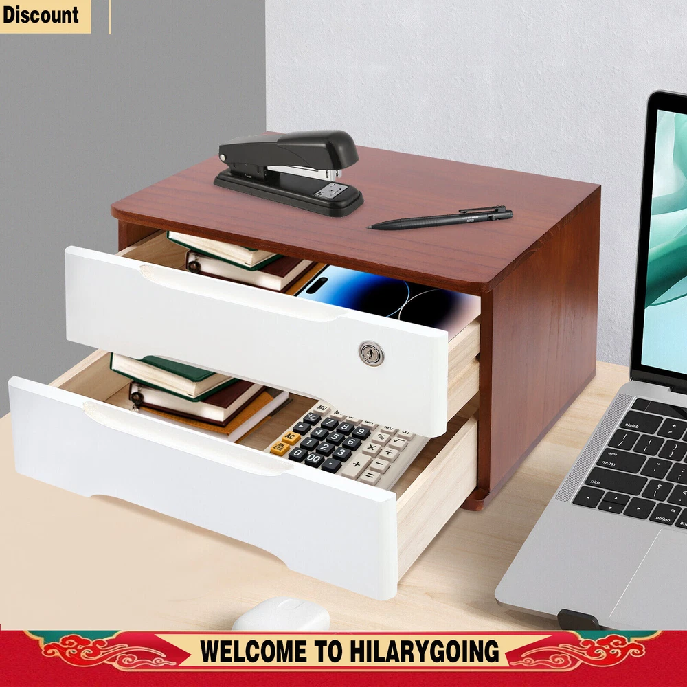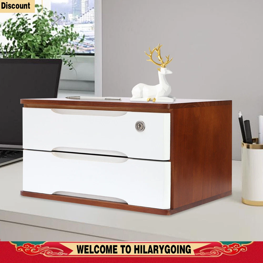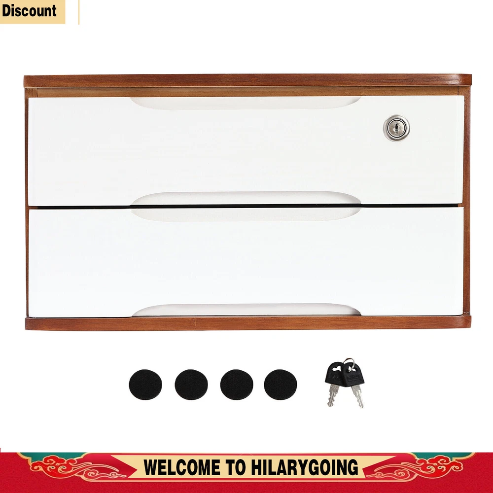 Desktop 2 Drawers Case+2keys 2-tier Wooden Desktop Storage Box With Lockable