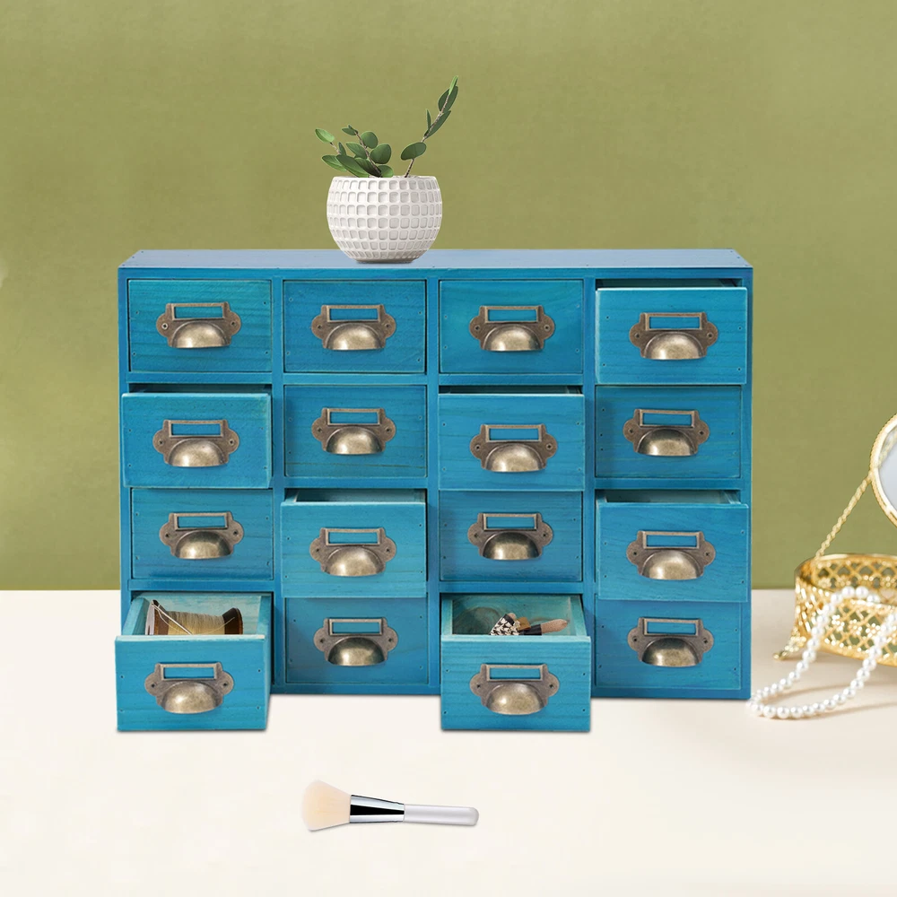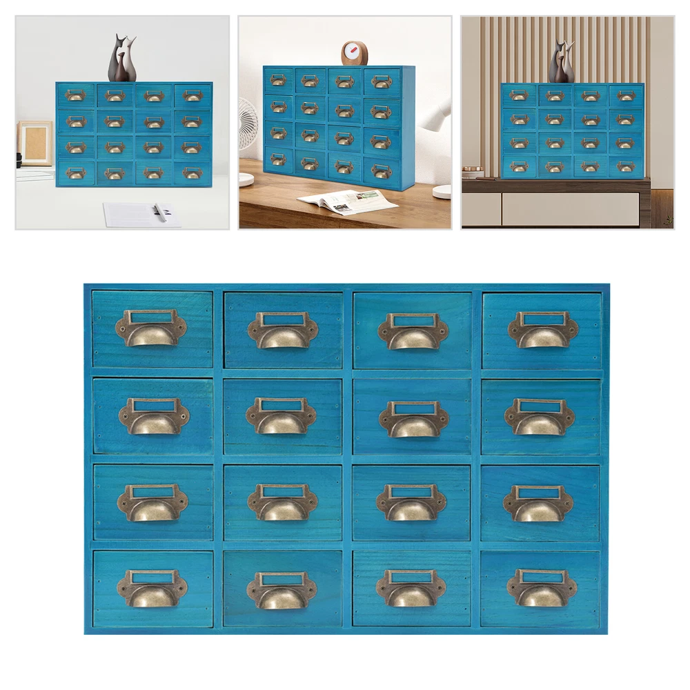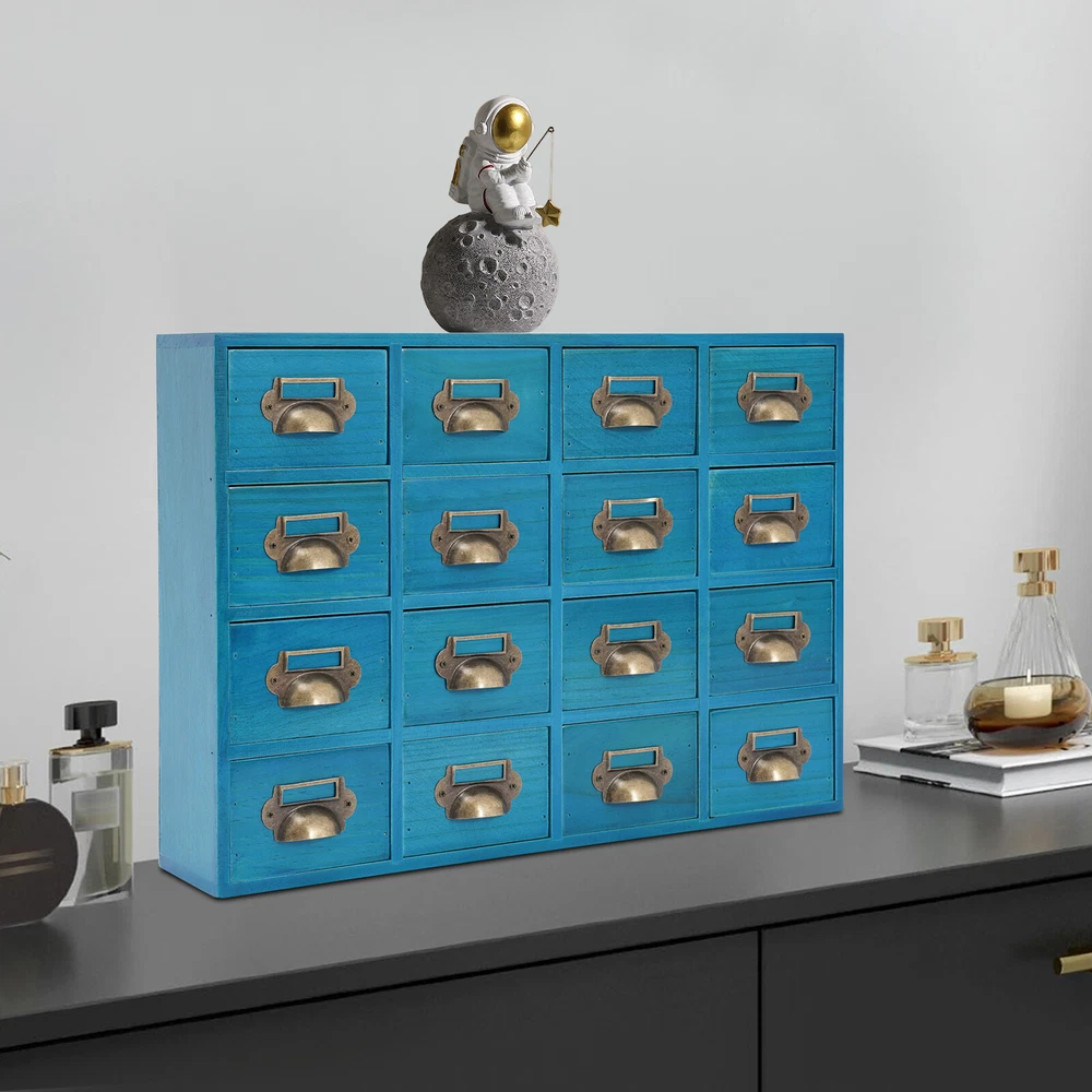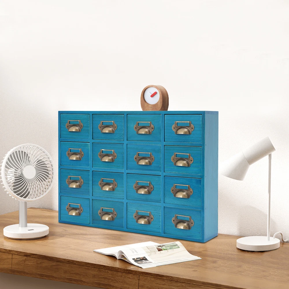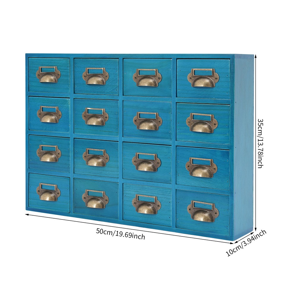 Desktop Drawers Storage Cabinet 16 Drawer Cabinet Wooden Medicine Cabinet Blue