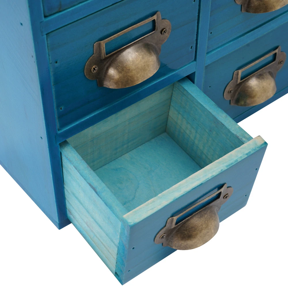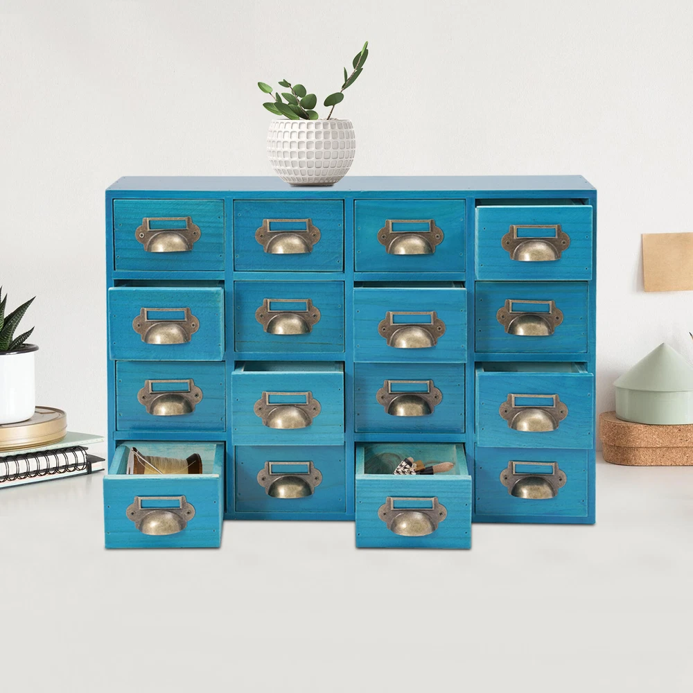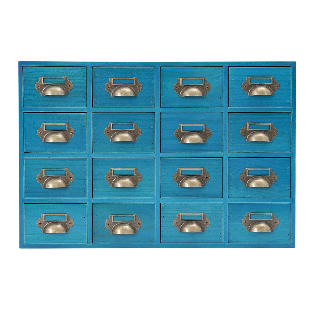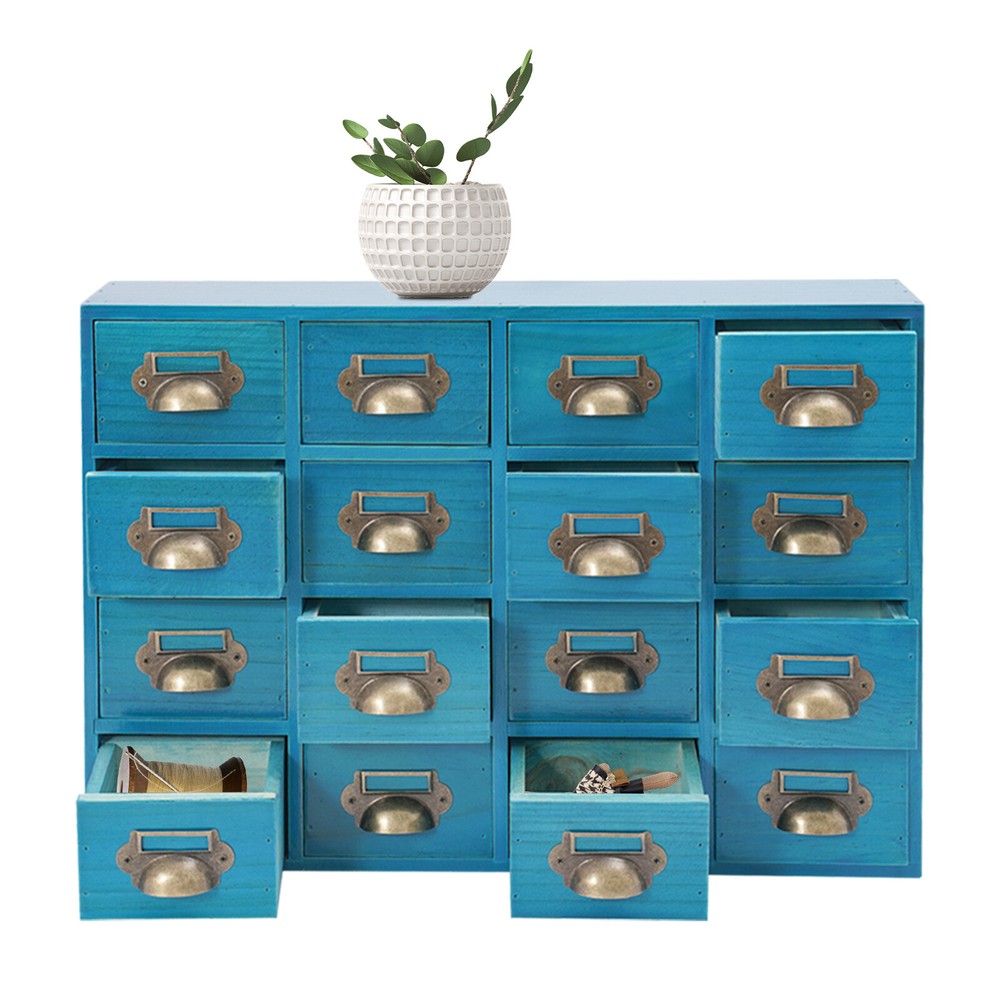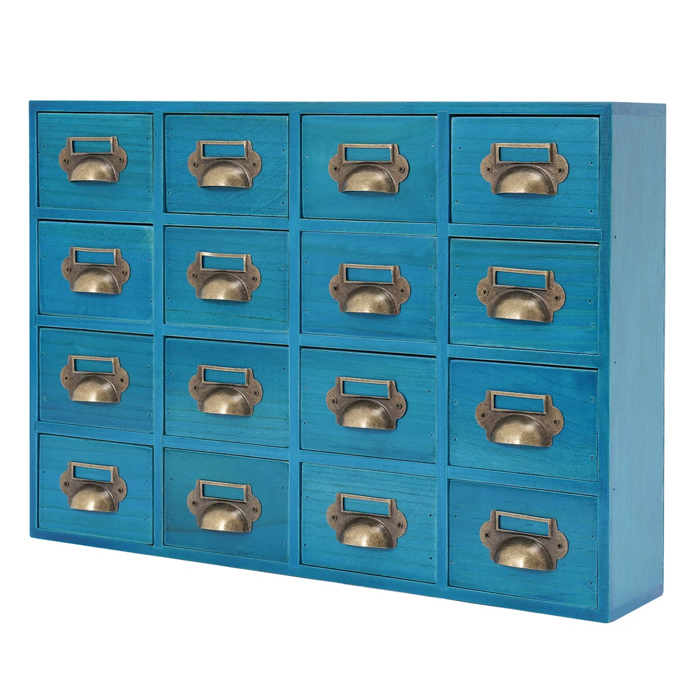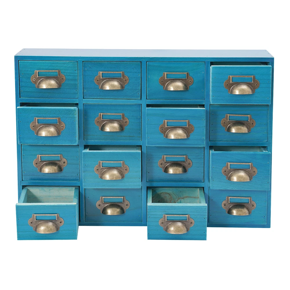 Desktop Drawers Storage Cabinet 16 Drawer Cabinet Wooden Medicine Cabinet Blue