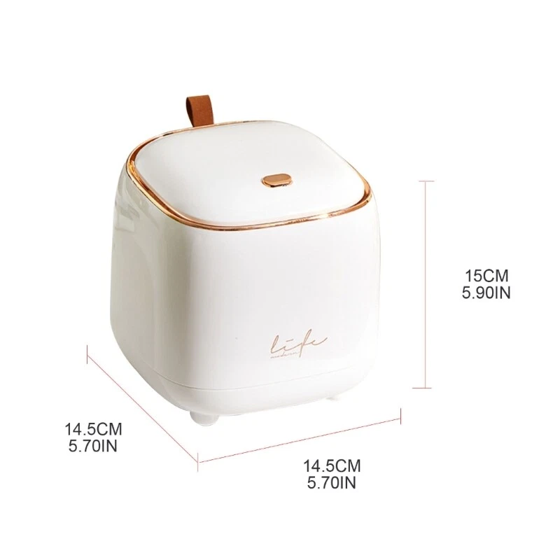 Features: brand new and high quality Desktop Trash Can: The small trash can with a press-style lid suitable for storage garbage like tissue, makeup, or other small wastes. Easy to Use: Simple and convenient, simply tap the button to open or closed the lid. Quality Materials: Made of fine quality ABS and microfiber material, rounded edges without burrs, durable and easy to clean Multipurpose: Suitable for coffee table, bedside tables, bathroom and laundry room, it can also be used for storing cosmetic and toiletries, keeping your desktop neat Widely Used: Delicate enough to fit most office desktop, countertop, and table, for office, bedroom, bathroom. Specifications: Material: ABS + Microfiber Size: approx.14.5x14.5x15cm/5.71x5.71x5.91in Optional Color: White, Dark Green, Yellow, Light Green Quantity: Pc Package Includes: x Trash Can note: Please allow 0-1cm error due to manual measurement. please make sure you do not mind before you bid. Due to difference between different monitors, the picture may not reflect the actual color of the item.