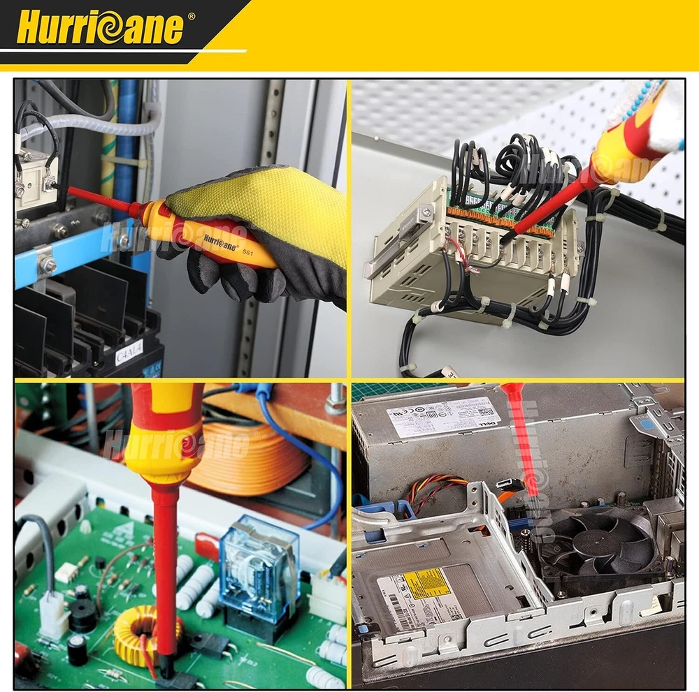 Destornilladores aislados 1000v herramientas para electricistas electricidad Set Recibirás: 13 destornilladores de electricista aislados CR-V de 1000 V con puntas magnéticas Phillips ranuradas Pozidriv Torx. Certificado: VDE y GS certificados garantizan estándares de trabajo seguros de 1000 voltios Material premium: fabricado con acero al cromo vanadio duradero. Puntas magnéticas de endurecimiento: tratamiento de endurecimiento y tratamiento superficial de fosfato de manganeso en puntas de destornillador Calidad de nivel industrial: se puede utilizar para trabajos profesionales y bricolaje doméstico; El material aislado lo hace seguro para que lo usen los usuarios.