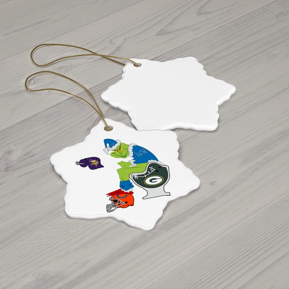 This Detroit Lions Grinch Sits On Toilet NFC North Funny Christmas Ornament will add a humorous touch to your holiday decor. Perfect for Detroit Lions fans or football enthusiasts, this ornament features vibrant colors and a glossy finish. Hang it on your Christmas tree or display it in your home to bring some festive cheer. Product features - Vibrant colors for bold designs - Solid one-piece construction for durability - Available in 2 shapes - Snowflake and Circle - Glossy finish for a polished look - Hole and gold-toned hanging string included Care instructions - Gently wipe the dirt or dust off with a clean, dry microfiber cloth