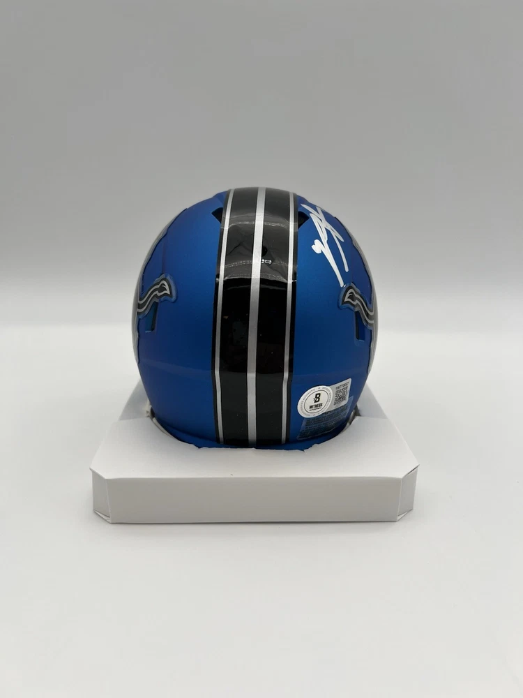 Showcase your love for the Detroit Lions with this autographed Riddell Alt Mini Helmet. The helmet is signed by Penei Sewell, a rising star in the football world. It is an original piece and comes with a Beckett Certificate of Authenticity (CoA) for added assurance. This mini helmet is perfect for any fan or collector looking to add a unique piece to their collection. It is a great way to show support for your favorite team and player. Get your hands on this one-of-a-kind item today!