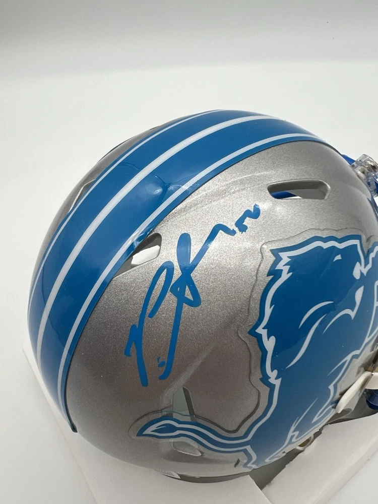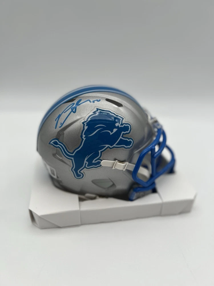 This Riddell mini helmet is a must-have for any Detroit Lions fan! It features the autograph of Penei Sewell, a rising star in the NFL. The helmet is an original product and comes with a Beckett Certificate of Authenticity (CoA) for added peace of mind. As a football fan, you understand the value of a good helmet. This one is perfect for displaying in your home or office. Whether you're a die-hard Detroit Lions fan or just a collector of sports memorabilia, this autographed helmet is a great addition to your collection.