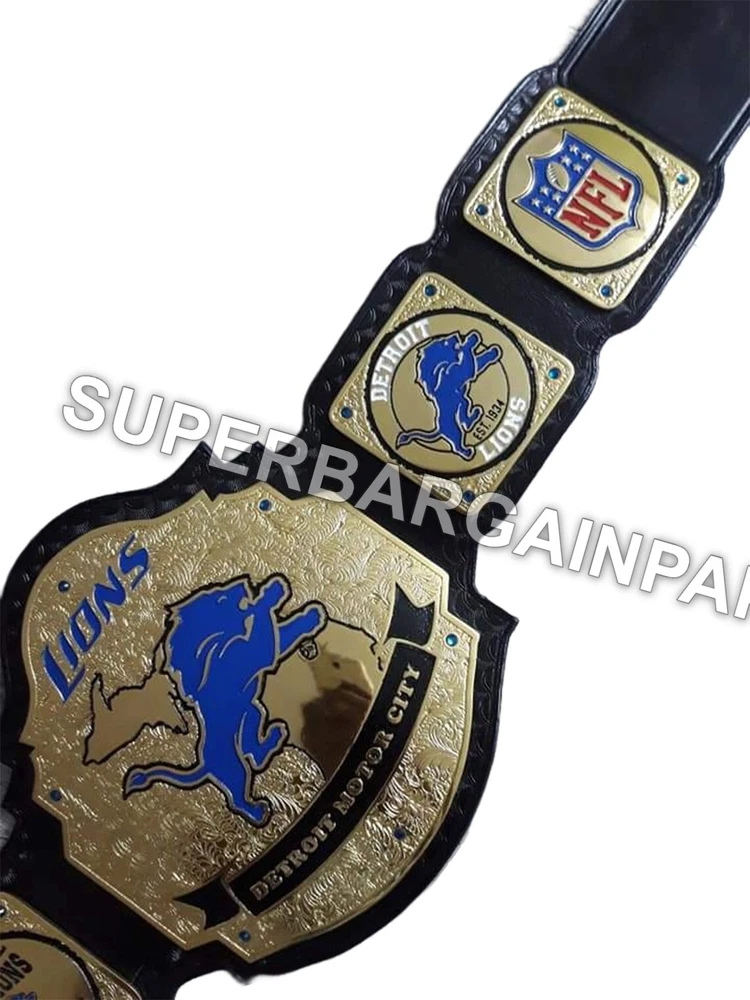 Welcome to our shop ------------------------------------------- We are specialist in manufacturing handmade products:: Our wide range of products include: >>>>Championship Belts WWE | WWF | AEW | UFC | WBC | WCW Product Description ** Detroit Lions Team Championship Belt *** Plate Metal: Brass (Zinc available on request with additional cost) Strap: 100% Leather Largest Waist Size: Fits upto 46'' Belt Length: ~50" Weight: 3.57 lbs | 1.81 Kg Plate Thickness: 2mm (4mm Version available on demand with additional cost) ::The belt is well crafted and manufactured to meet the quality demands of fans:: Get your hands on this marvelous piece now! Note: If you need further details kindly inbox us, we will try to be as responsive as possible. ------------------------------------------- Return Policy: Generally we don't have much complains on our products and we make sure to 100% satisfy our clients. We send the product in well Bubble Wrapped packaging so there is highly unlike chance of getting damaged item. In case there is a damage, we will try to give partial refund or you can ask for full refund within 30 days after returning the belt to origin. NOTE: 1. If you have placed the order by mistake or you have purchased a wrong item then we are not going to refund that. 2. Buyer will pay the shipping fee of returning the belt. ------------------------------------------- Happy Shopping! :)