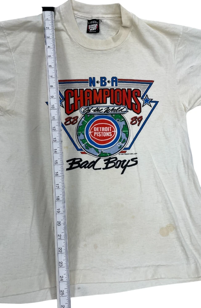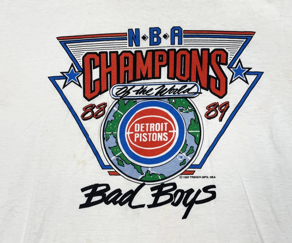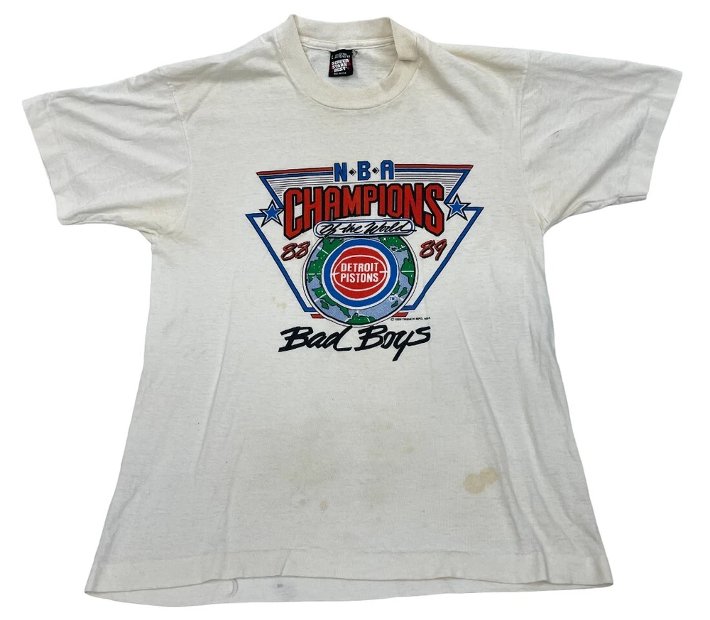 Detroit Pistons 1988-89 Champions Bad Boys Screen Stars T-Shirt DISTRESSED Large