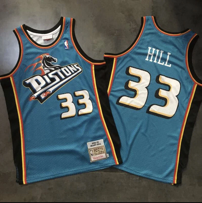 Detroit Pistons Grant Hill blue regular season basketball retro jersey