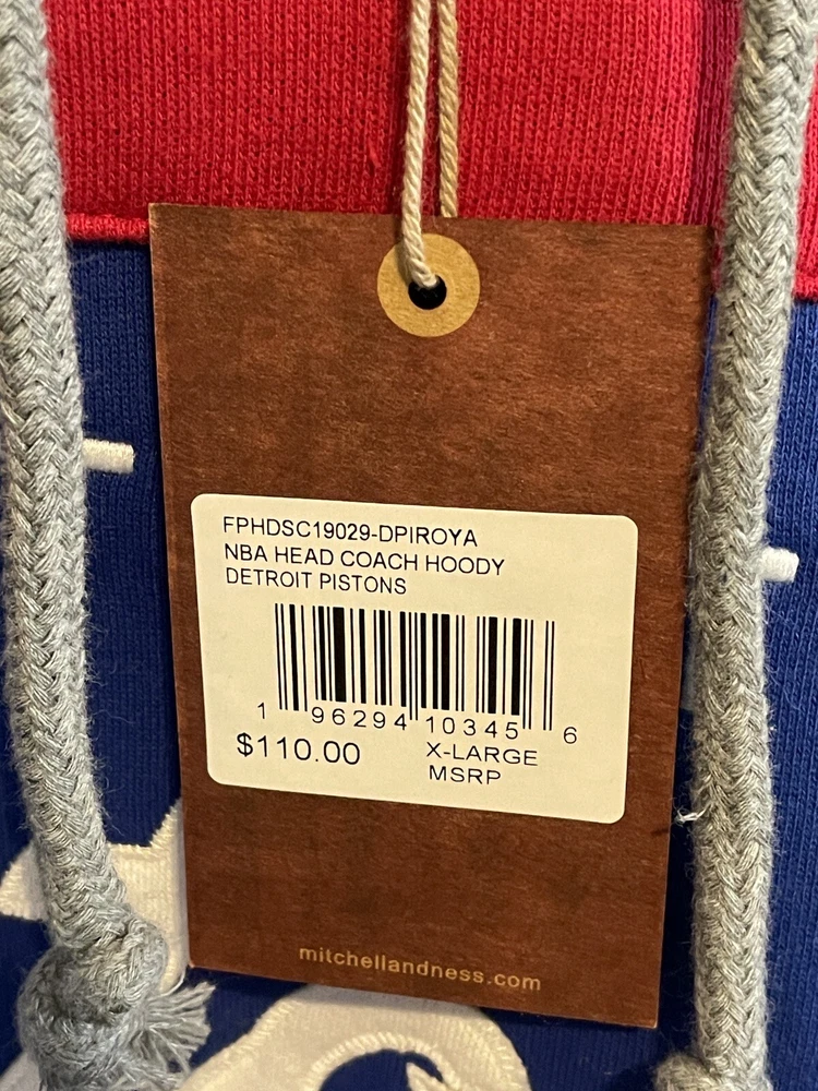 Detroit Pistons Mitchell and Ness Hardwood Classics Hoodie Sweatshirt - X-Large