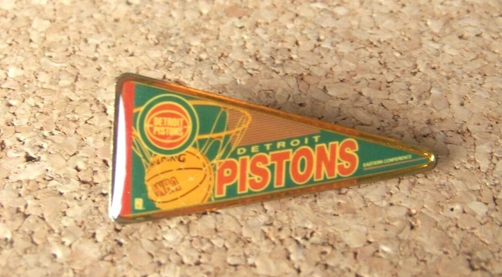 Detroit Pistons pennant lapel pin Item Description: Pin: post and butterfly clip backed and gold tone backed Pin Size: measures about 1.8" wide Pin Condition: Although unused, there are minor nicks and marks and the pin has yellowed. Packaging: none Packaging condition: n/a Shipping: Shipping Time : 1 business day of receiving cleared payment, Mondays thru Fridays. U.S.A. Shipping Costs: FREE! Payment: PayPal is the fastest method, just use the link after buying the listing. Return Policy: Returns accepted, buyer pays return shipping unless there’s an error on seller’s part. Additional Information: Full e-mail support for inquiries or problems. HIGH COUNTRY COLLECTIBLES Since 1989 – A LEADER IN THE DENVER SPORTS MEMORABILIA MARKET. Check out my other auctions and listings, and keep an eye out for the different, unusual, and EXCLUSIVE items available nowhere else but from High Country Collectibles. Don’t forget to click on my "Stores" link, next to my eBay name, to see other items I currently have listed for sale, or you can copy and paste this address into your browser: stores.ebay.com/highcountrycollectibles