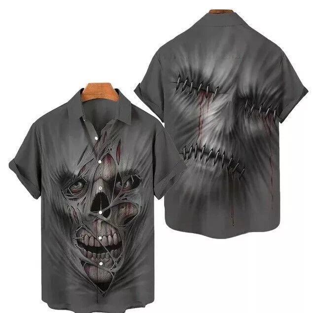 Devil Skull Art Hip Hop 3D Print Unisex Hawaiian Button Up Shirt Lapel Top