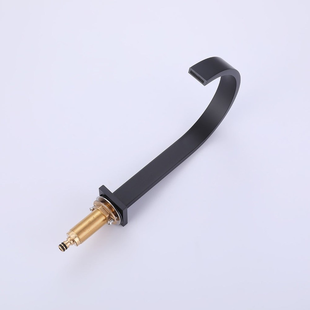 [additional] Included: Spout Valve (2 units) with handles "T" to connect valves and spout Hose for valve and spout connection. 1/2 inch female NPT 12 inch length (2 units) Installation accessories Qty: 1 Documents: Spec Sheet (.PDF) [/additional] Deliver a sense of eye-catching designer style to any bathroom area with this Line2 family widespread bathroom faucet.Constructed from solid brass to ensure impressive durability, the widespread faucet boasts a top-quality finish and a stunning modern design. Also utilizing ceramic disc technology to prevent leaks and drips, the faucet is suitable for installation with all plumbing systems.Available in different finishes. Features: Widespread faucet Available in different finishes 8 to 16 inch installation Ceramic cartridge 3/4 inch Flow rate: 1.2 gpm @ 60 psi / 4.5 Lmin @ 414 kPa Deck thickness: Max 1.8 inch Hose included for valve and spout connection. 1/2 inch female NPT 12 inch length Material: Brass Finish/Color: Matt black Dimensions: W: 13.5" * H: 9.5" * D: 7.75" Weight: 4.9 lb. Rustproof: Yes Warranty (Years): 1 Material Warranty: Yes Finish Warranty: Yes UPC Certified: Yes Easy Installation: Yes
