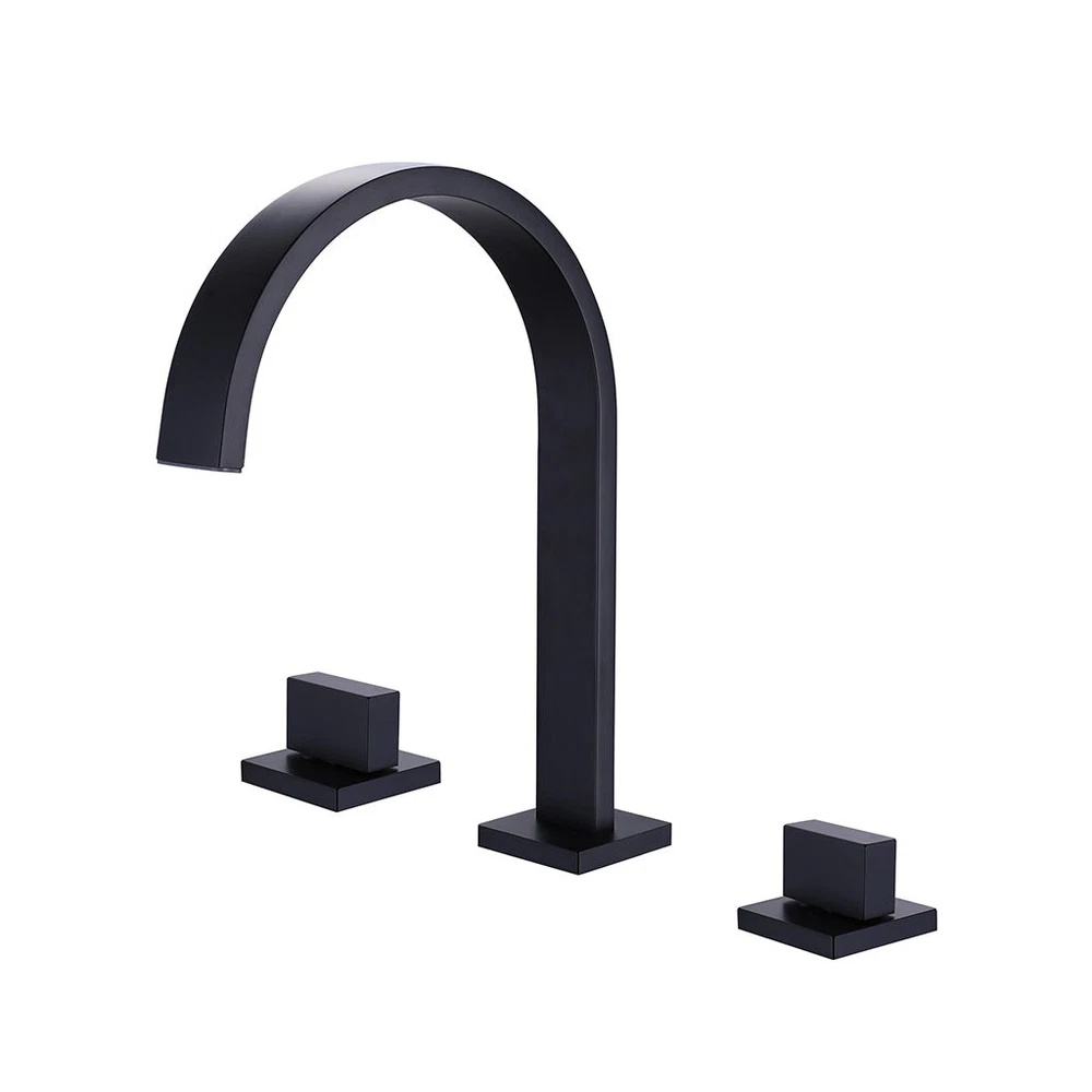 [additional] Included: Spout Valve (2 units) with handles "T" to connect valves and spout Hose for valve and spout connection. 1/2 inch female NPT 12 inch length (2 units) Installation accessories Qty: 1 Documents: Spec Sheet (.PDF) [/additional] Contemporary and elegant bathroom faucet with two valves. Design of flat square lines that makes it worthy of being inside our Luk 2 family, a series of modern style bathroom accessories.This faucet includes classic straight lines for an attractive but substantial style that provides an elegant bathroom sensation. The characteristics of graceful style and without complications give this taps an eternal but fashionable presence. Adapted but relaxed. This brilliant collection works perfectly with current lifestyles. The handles make it easy to adjust the water. Clear laminar flow provides a beautiful waterpresentation. Tap handles can be installed at any distance between 8 in. and 16 in. for more customized extended installation.Available in different finishes. Features: Widespread faucet 8 to 16 inch installation Ceramic cartridge 3/4 inch Flow rate: 1.2 gpm @ 60 psi / 4.5 Lmin @ 414 kPa Deck thickness: Max 1 inch Hose included for valve and spout connection. 1/2 inch female NPT 12 inch length Available in different finishes. Material: Brass Finish/Color: Matt Black Dimensions: W: 10" * H: 9.5" * D: 7.5" Weight: 4.4 lb. Rustproof: Yes Warranty (Years): 1 Material Warranty: Yes Finish Warranty: Yes UPC Certified: Yes Easy Installation: Yes