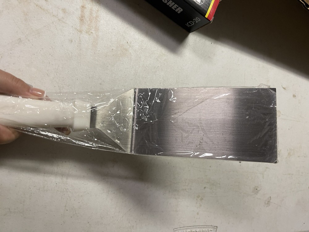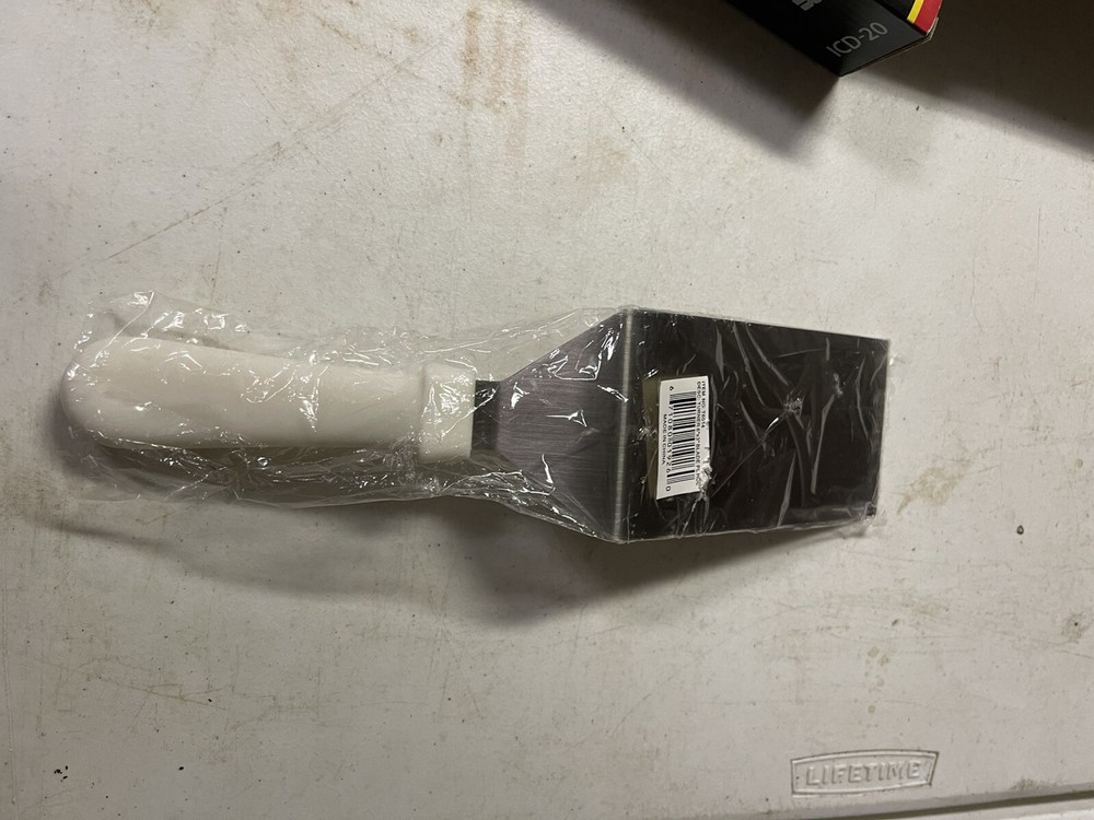 This burger turner is a game-changer! The sturdy stainless steel blade flips patties effortlessly, and the comfortable white handle stays cool. Perfect for grilling season—durable, easy to clean, and just the right size. A must-have for any backyard cookout!