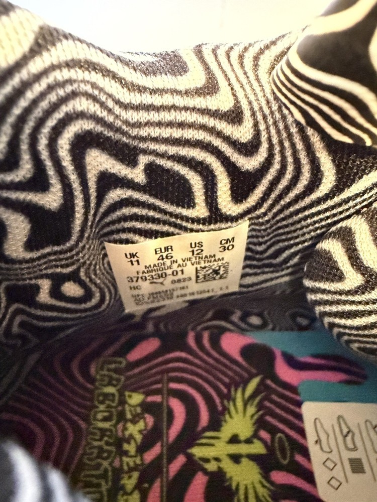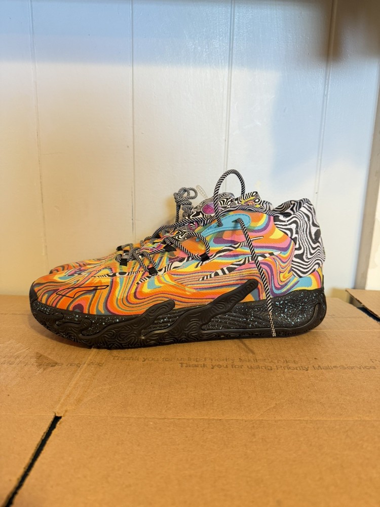 Model: PUMA MB 03 Style Code: 379330-01 Color: Multicolor Type: Athletic Product Line: PUMA Mb Release Year: 2023 Brand: PUMA Upper Material: Mesh Department: Men US Shoe Size: 12 Style: Sneaker