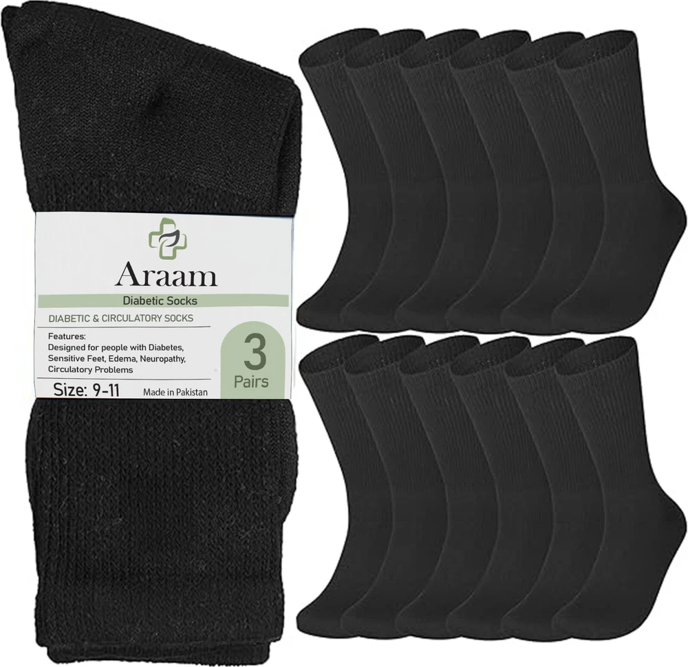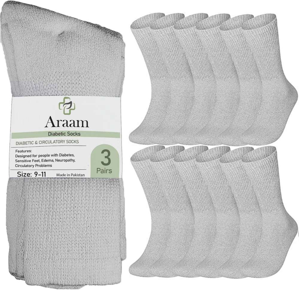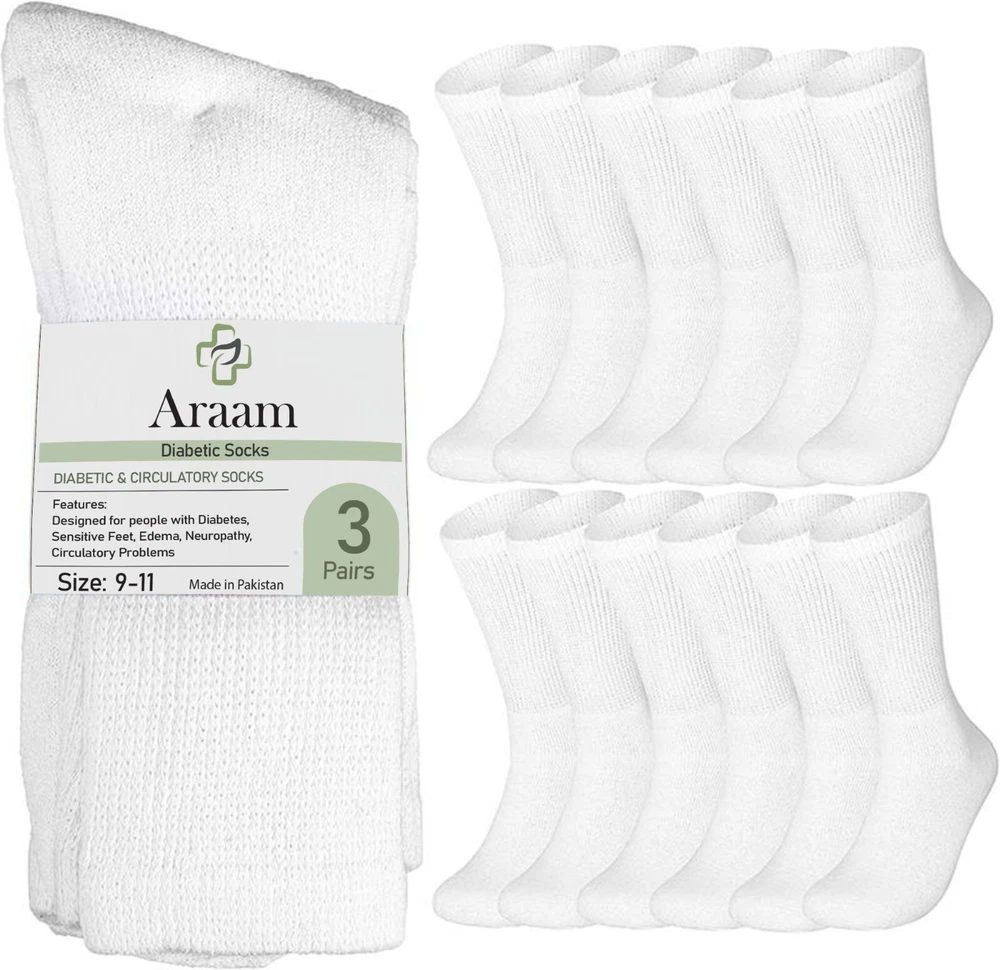Size: 9-11,10-13,13-15 Toe Style: Full Toe Department: Men Sock Length: Mid Calf Character: Diabetic Socks Performance/Activity: Baseball, Basketball, Bodybuilding, CrossFit, Cross Training, Cycling, Dance, Football, Golf, Gym & Training, Hiking, Hockey, Hunting, Lacrosse, Pilates, Racing, Riding, Running & Jogging, Skateboarding, Soccer, Squash, Tennis, Track & Field, Volleyball, Walking, Weightlifting, Wrestling, Yoga Material: Cotton, Cotton Blend Features: All Seasons, Antibacterial, Arch Support, Breathable, Cushioned, Lightweight, Moisture Wicking, Non-Slip Pattern: Solid Type: Socks Handmade: No Number in Pack: 12 Pairs Style: Crew Socks Garment Care: Machine Washable Size Type: Regular Brand: Araam Personalize: No Season: Fall, Spring, Summer, Winter Country/Region of Manufacture: Pakistan Occasion: Business, Casual, Formal, Workwear Theme: 80s, 90s, Healthy Color: White