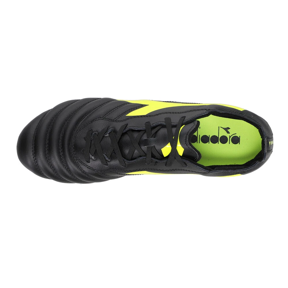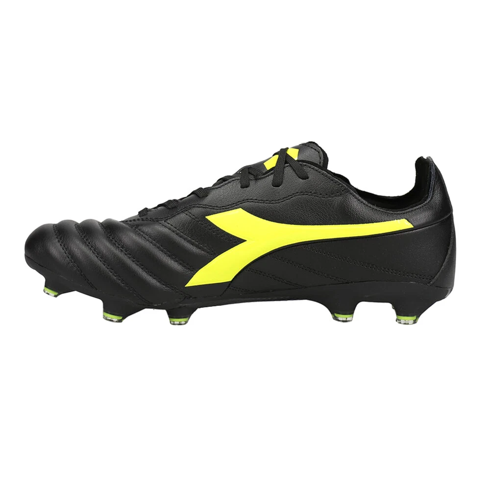 Brasil Elite 2 LT LP12 Soccer Cleats Product Details Ultra-soft, water-resistant full-grain calfskin Lace-up Removable insole Lightweight polyurethane of varying hardness with 12 fixed studs Brasil Elite 2 LT LP12 is the men’s football boot that is perfect for firm grassy or earthy ground. These boots are made up of an ultra-soft, water-resistant full-grain calfskin upper with a non-stretch fabric lining, non-slip Polyurethane heel lining, and insole with flex points on the ball of the foot Additional Details Color: Black Occasion: Casual Gender: Mens Age: Adult Brand: Diadora