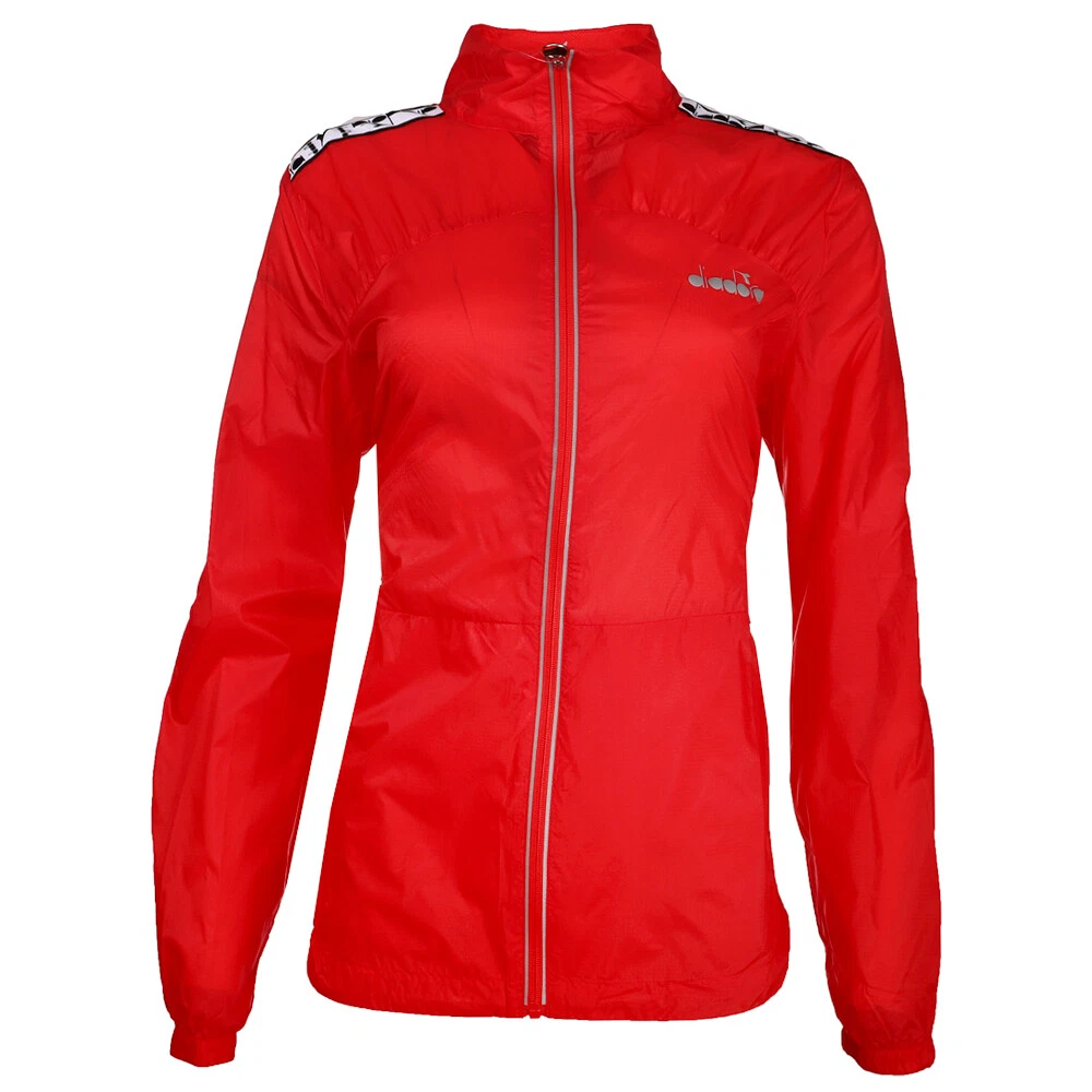Lightweight Full Zip Running Windbreaker Product Details Windproof fabric with water-repellent finish Breathability technology Zippered side pockets Reflective detailing Women's running windbreaker with water-repellent finish, made of polyamide with reflective details. Additional Details Color: Red Occasion: Casual Gender: Womens Age: Adult Brand: Diadora