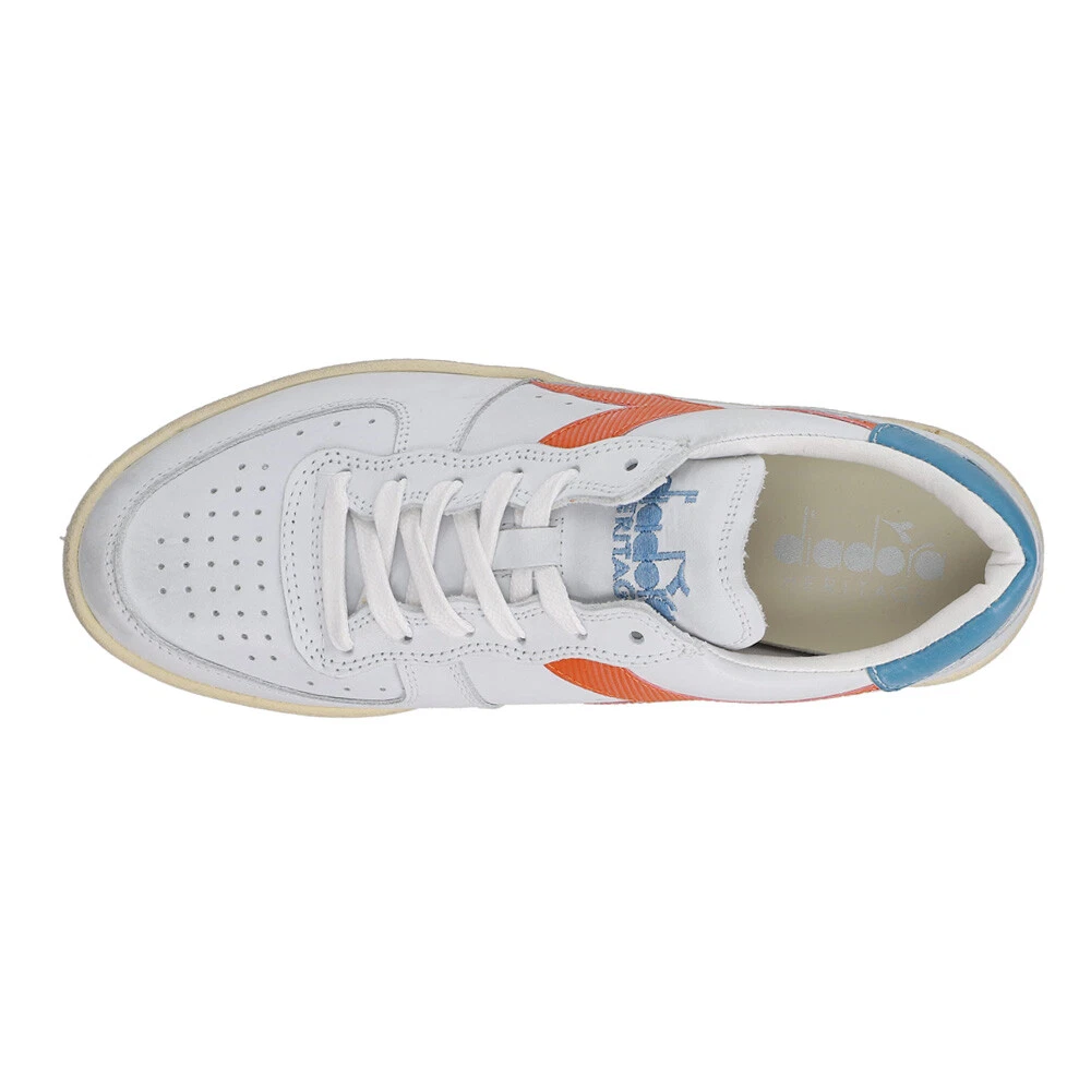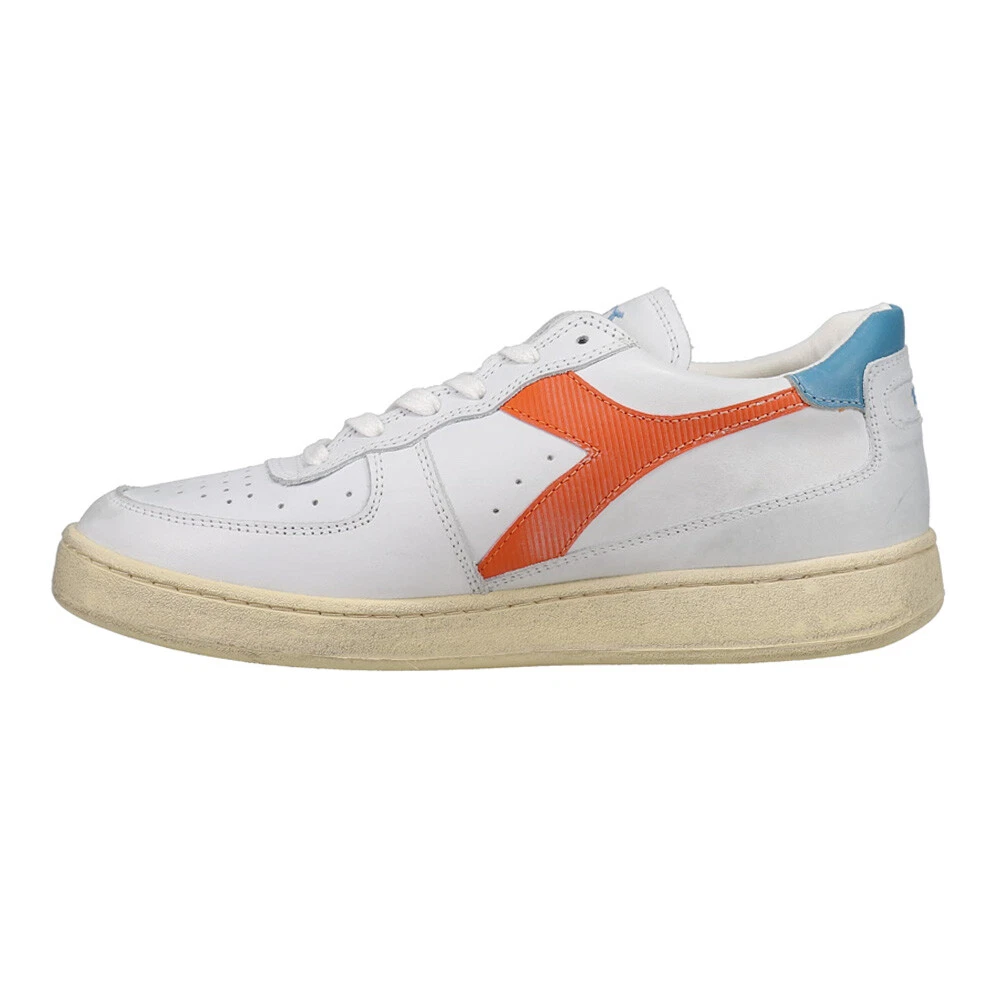 Mi Basket Low Used Lace Up Sneakers Product Details Leather upper with stone wash and wax treatment Lace up closure with cotton waxed laces Removable insole Rubber outsole It’s 1984 and a pair of trainers are writing the history of basketball: we’re talking about the Mi Basket. Here the iconic style is presented in its Mi Basket Low Used version: full-grain leather with a special stonewash treatment. Additional Details Color: Orange, White Occasion: Casual Gender: Mens Age: Adult Brand: Diadora