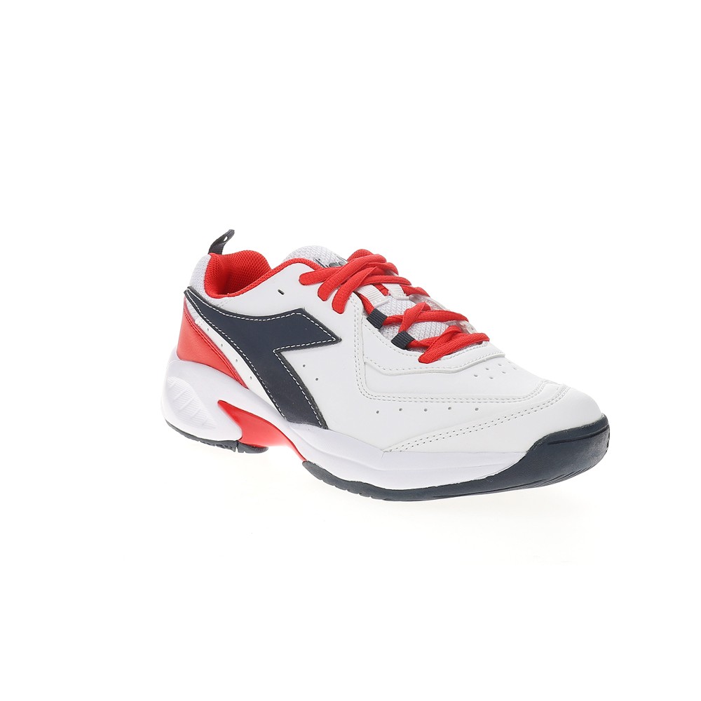 S. Challenge 5 SL Tennis Shoes (Little Kid-Big Kid) Product Details Synthetic and Mesh upper CCB cushioning Ethylene vinyl acetate midsole Thermoplastic rubber outsole S. Challenge 5 SL is a tennis shoe designed for junior tennis beginners. Made with Thermo plastic Rubber outsole, SuprellTech and mesh upper, cotton jersey and printed Ethylene Vinyl Acetate foam, printed Ethylene Vinyl Acetate foam midsole with C.C.B. Additional Details Color: Blue, Red, White Occasion: Casual Gender: Boys Age: Youth Brand: