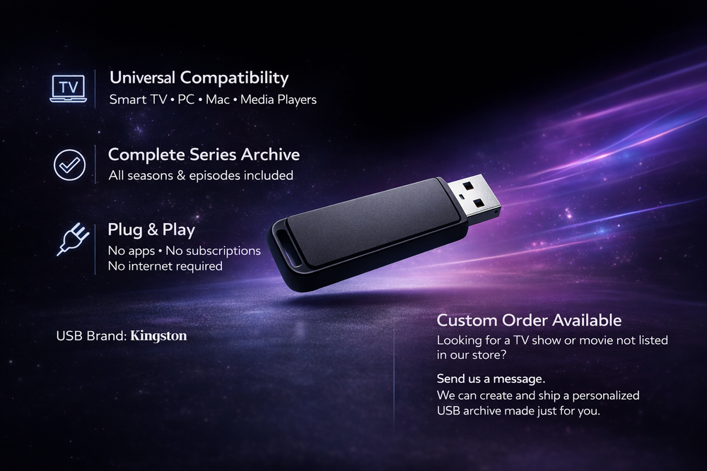 Own the complete Diagnosis: Murder (1993–2001) series delivered on a physical USB Flash Drive. All seasons and episodes are carefully organized and ready to watch in DVD Quality. A timeless crime and mystery series presented in a practical and modern format. Simply plug in and start watching. SERIES DETAILS TV Show: Diagnosis: Murder Years Aired: 1993–2001 Seasons: 8 Episodes: 178 Genre: Crime, Mystery, Drama Language: English Video Quality: DVD Quality Media Type: MKV / MP4 Storage Type: USB Flash Drive WHY CHOOSE USB INSTEAD OF DVD? No discs to scratch, break, or lose Simple plug-and-play convenience Works on Smart TVs, computers, media players, and projectors Easy to store and travel-friendly Episodes neatly organized by season A USB format gives you portability, reliability, and instant access in one compact device. SHIPPING INFORMATION USA: Express delivery, up to 5 business days Europe: Express delivery, up to 3 business days Shipped securely via UPS or FedEx CUSTOM ORDERS AVAILABLE Looking for another TV series or movie not listed in our store? Send us a message anytime and we can prepare a custom USB collection tailored to your request.