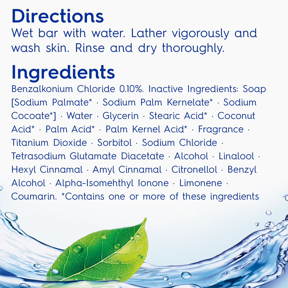 Product details Experience Crisp Cleanliness with Dial® Spring Water® Bar Soap Revitalize your senses with Dial® Antibacterial Spring Water® Scent Deodorant Bar Soap. This refreshing soap eliminates 99.9% of bacteria* while providing a deep yet gentle cleanse, thanks to Dial® Clean Rinse Technology™. Its uplifting spring water scent leaves your skin feeling soft, healthy, and rejuvenated. Dermatologist-Tested and Cruelty-Free Feel confident in your choice with Dial® Spring Water® bar soap. Dermatologist-tested and free from parabens, phthalates, and silicones, this soap is approved as cruelty-free under the Leaping Bunny Program. It's a thoughtful option for those who value both quality and ethical standards. Convenient Packaging for Everyday Use This package includes 16 four-ounce bars, making it perfect for families or long-term use. Whether for daily cleansing or refreshing moments, Dial® Spring Water® bar soap is a reliable addition to your personal care routine. A Legacy of Clean Innovation Dial® has been a trusted name in personal cleansing since the 1940s. As the pioneer of antibacterial bar and liquid hand soaps, Dial® continues to innovate with products designed to help you and your family achieve a superior clean every day.