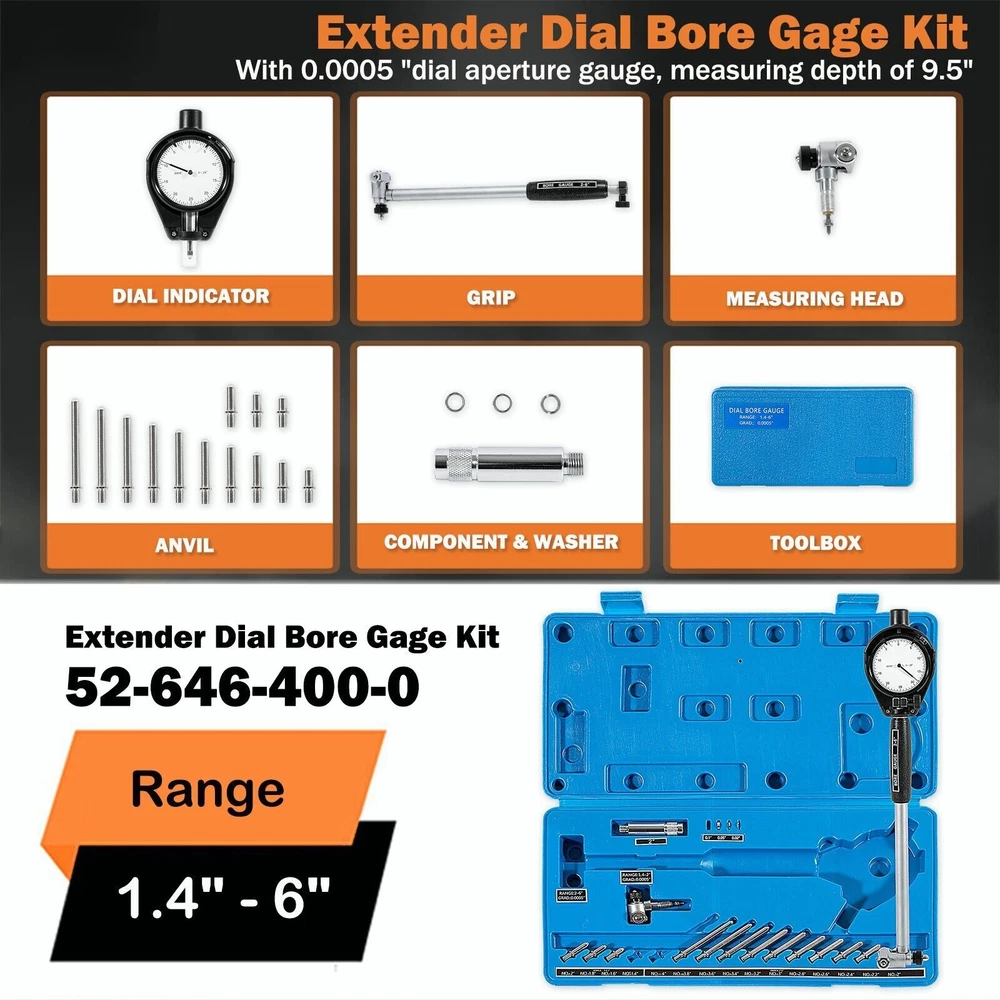 Dial Indicator Bore Gage Gauge Kit 1.4"-6" 52-646-400-0 For Deep Engine Cylinder
