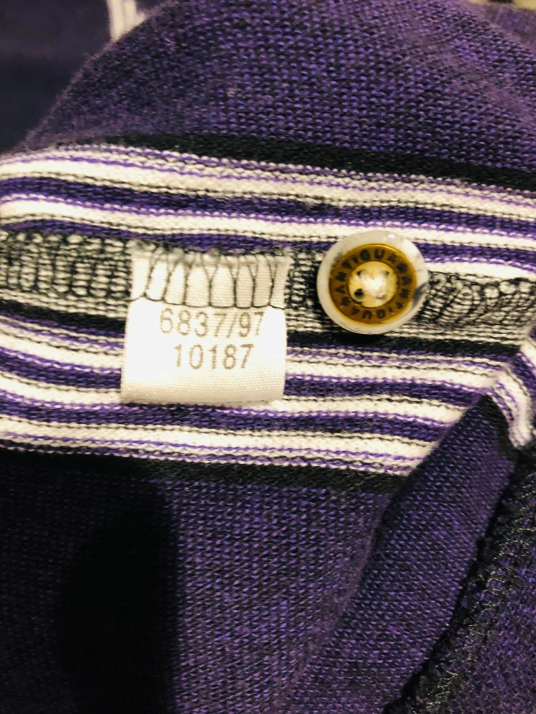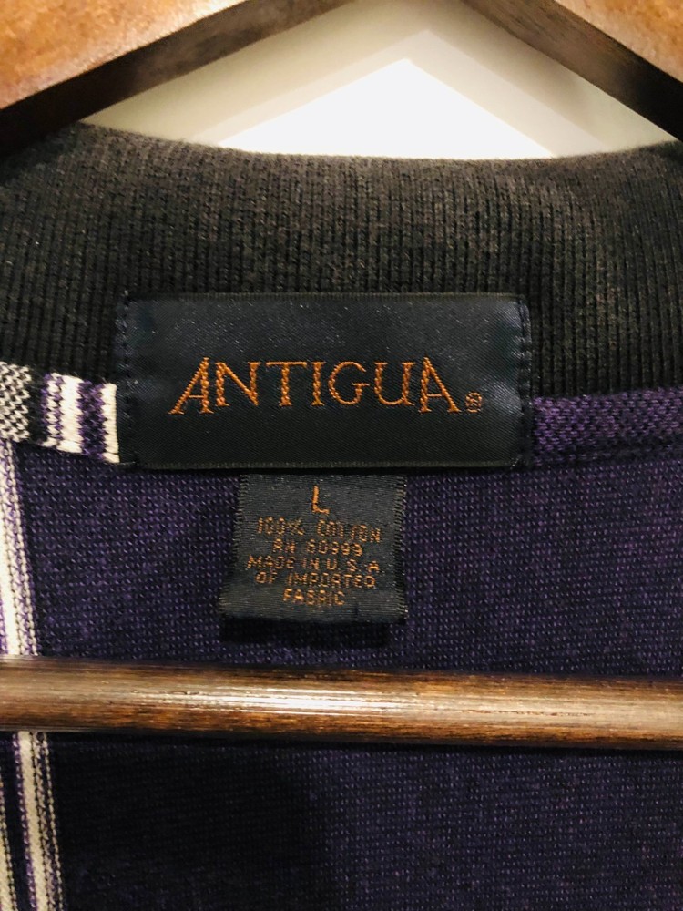 The Diamond Backs 1997 Vintage Antigua Purple Striped Polo in size Large is a casual unisex adult baseball apparel featuring the Arizona Diamondbacks team. Made from 100% polyester, this officially licensed polo shirt is perfect for fans of Major League Baseball looking to show their support in a retro 90s style. Its collared neckline and short sleeves offer a classic yet comfortable fit, ideal for wearing during the regular season games or even out on the golf course. Easy to care for with machine washability, this multicolor polo is a must-have for any baseball enthusiast looking to add a unique piece to their collection.