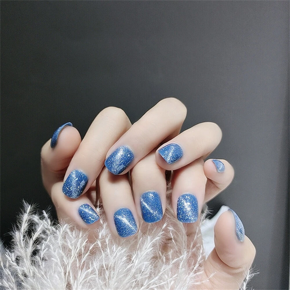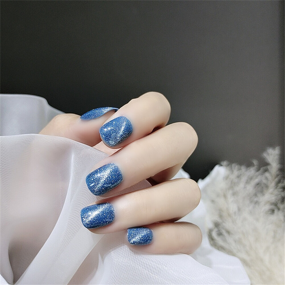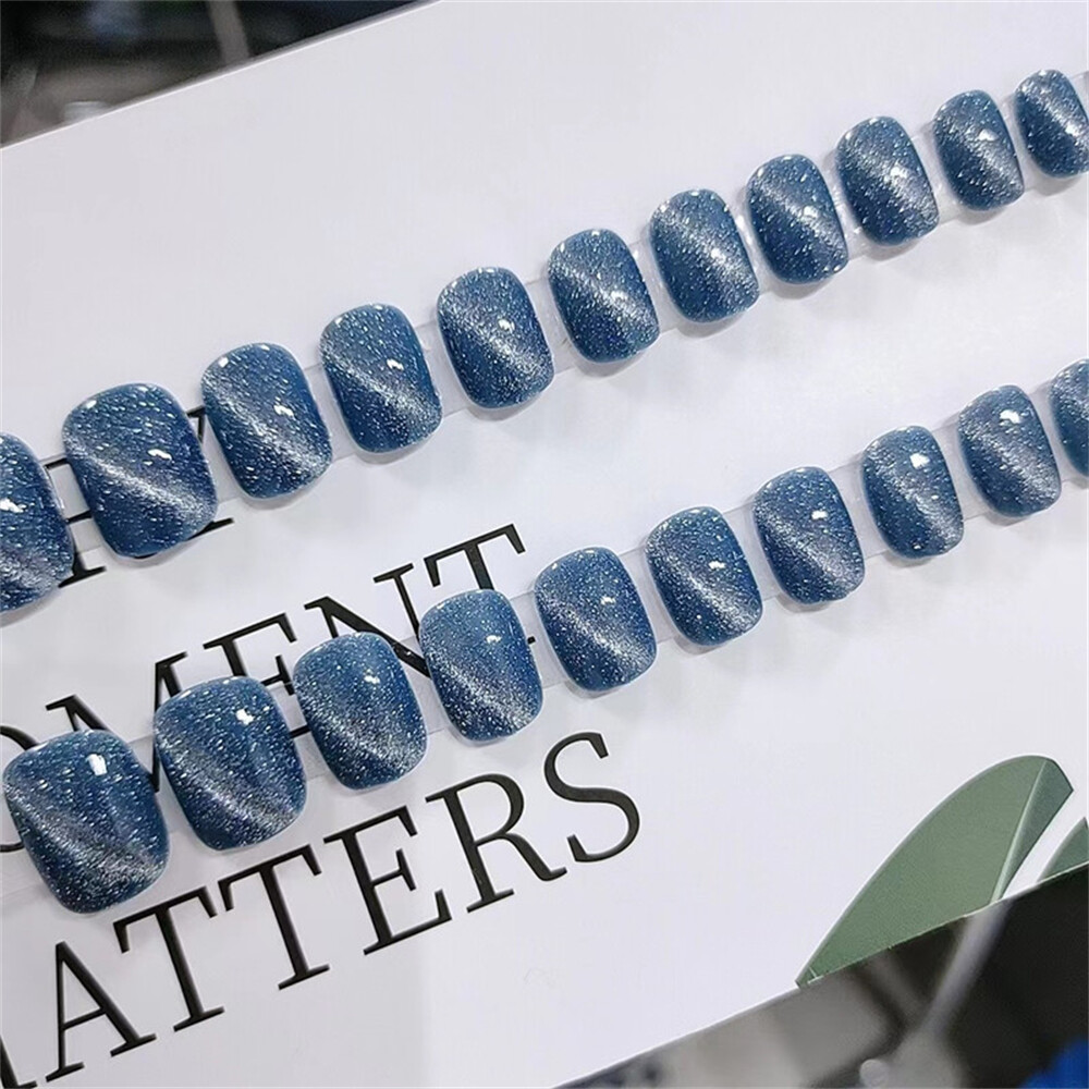 $ 2.11Aurora Shiny Cat's Eye False Nail Short Square Press on Nails for Nail Art 24pcs