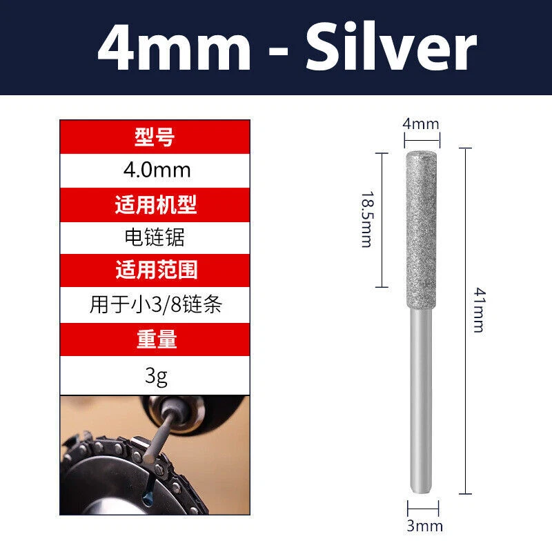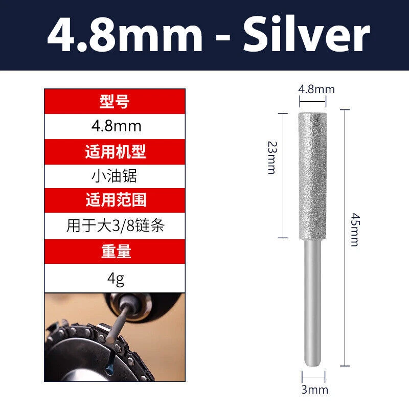 4/4.8/5.5mm Diamond Chainsaw Sharpener Burr Drills Bits Grinder Chain Saw Dremel ●Product Parameters : Sizes : 4mm 4.8mm 5.5mm Product material : Carbide