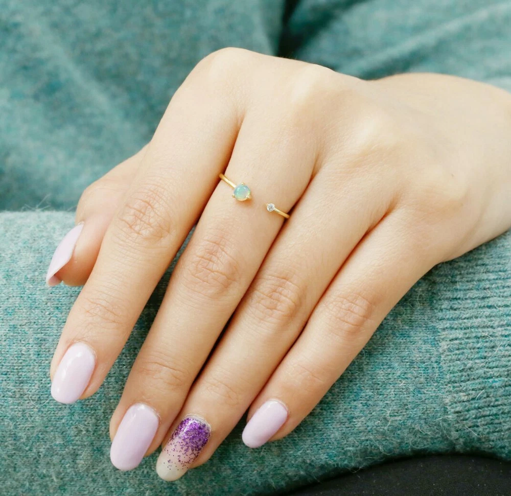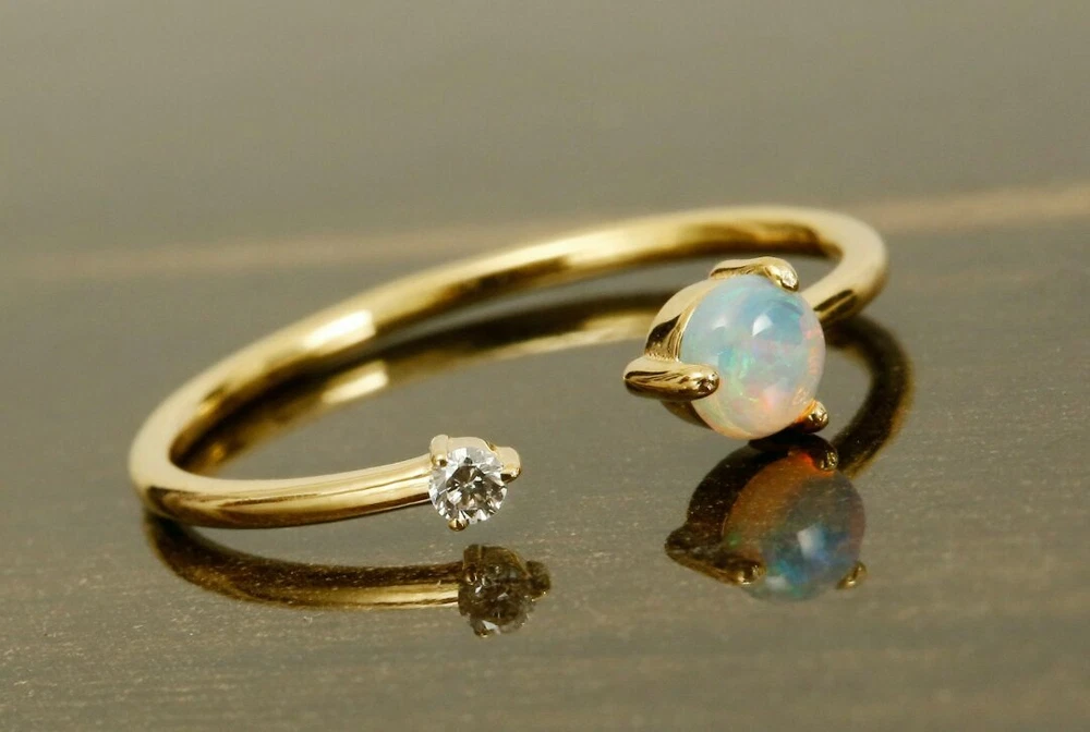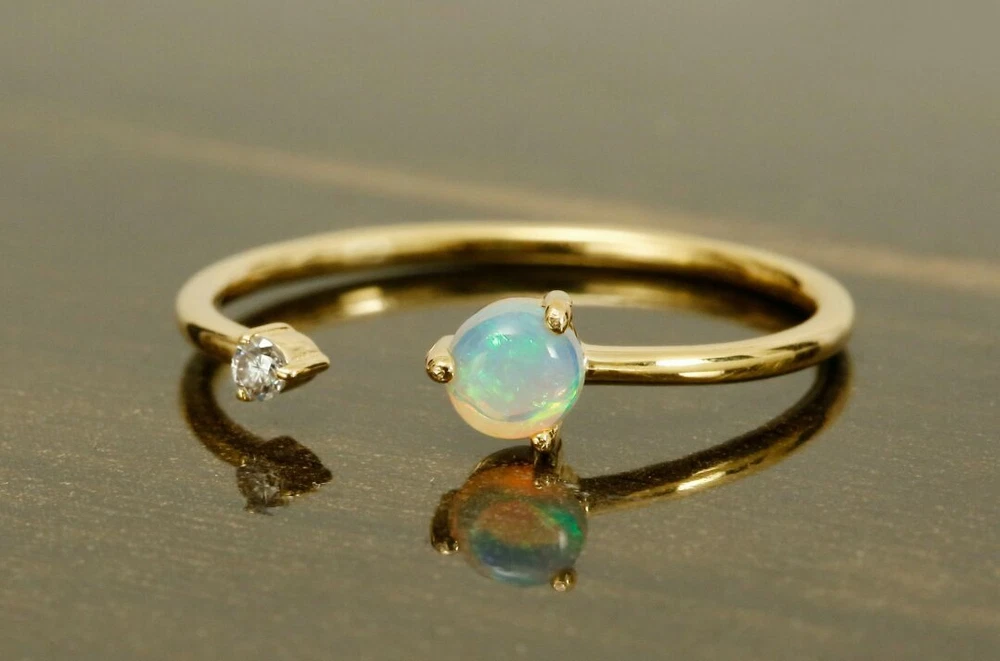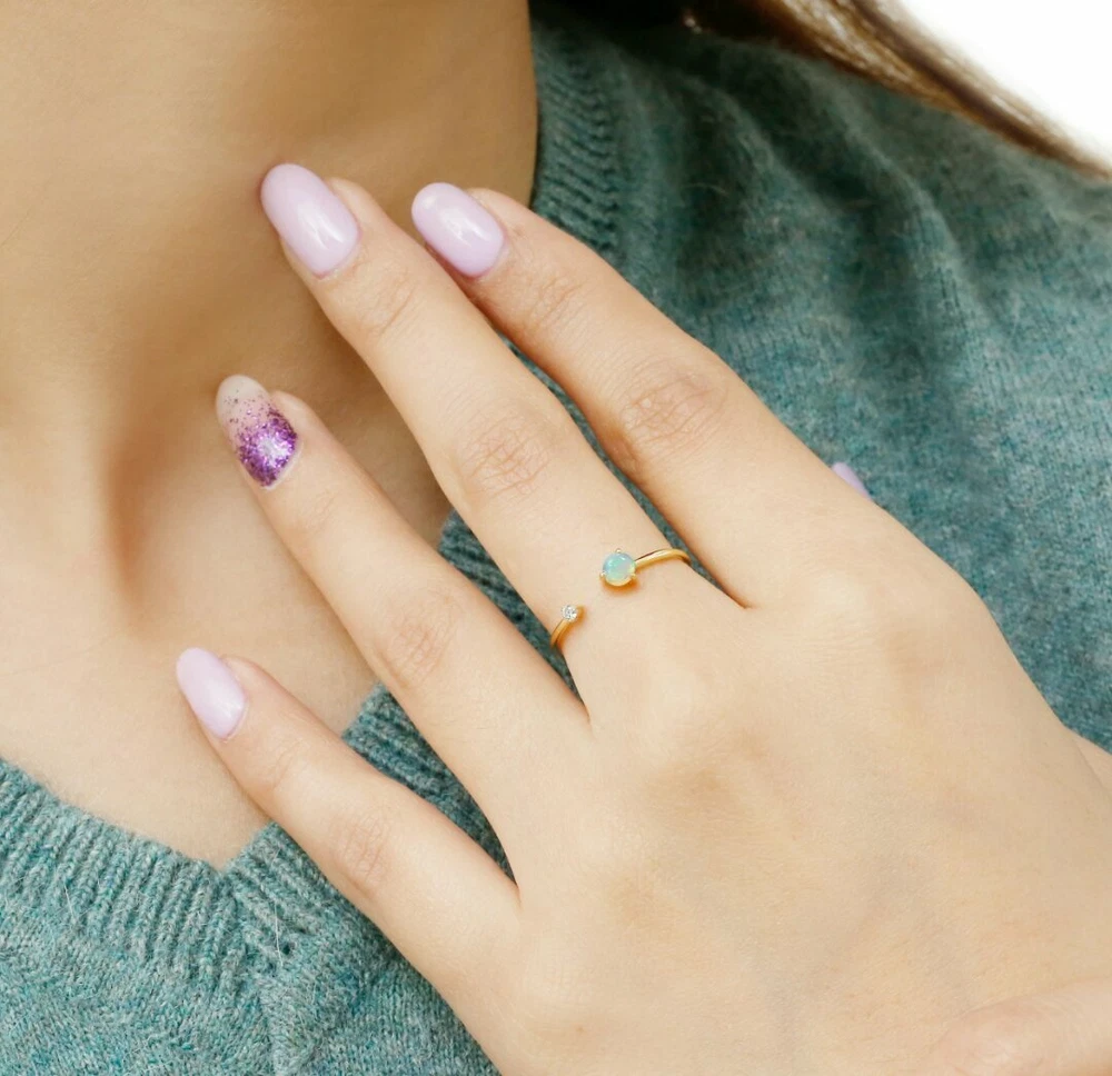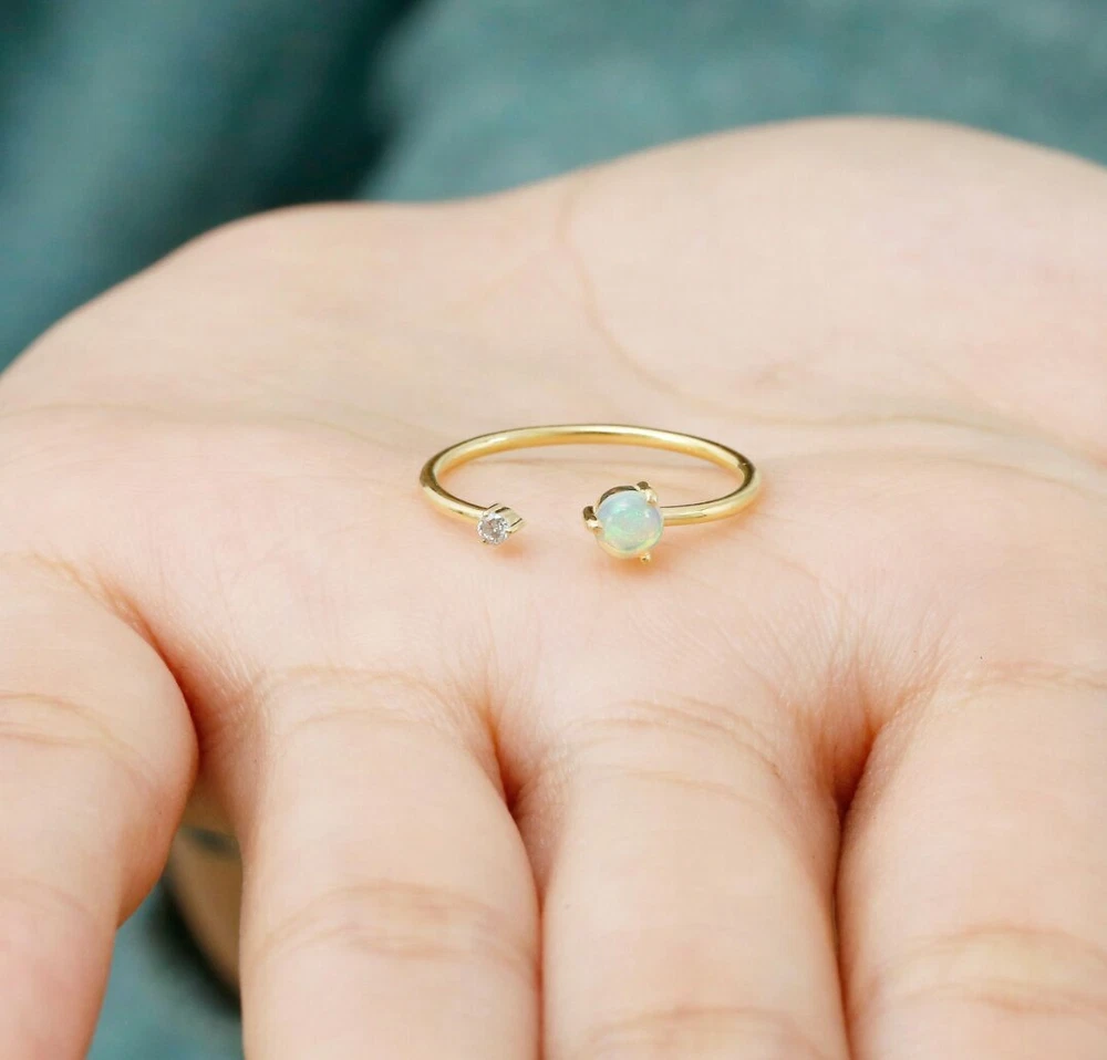 Diamond Open Ring 14k Solid Gold Opal Designer Ring Bridal Wedding Ring Gift. Light weight can be worn everyday HOW TO ORDER Simply Message upon ordering to let us know If you can't find the information you need or need some advice for your design? Feel free to contact us. A P P R O X T I M E All items are custom made to order. Our approx time is about 6 - 10 business days. This can change during peak season Note: There May Be Little Variation In Colour Between Image And Actual gemstone due to the resolution of the display of your computer or mobile But our product Image are original.Any image are not photoshop .We Are Trying Our Best To Display Actual Image Of The Gemstone Which is To Be Delivered To Our Customers. Our Business Policy Shipping Time & Delivery Time: Orders will be shipped between 3- 4 Days. Payment Terms : We Accept Payment Through PayPal ONLY. Return Policy: · You May Return Your Order Within 30 Days From The Date of Delivery. · The Item Must be Returned In Its Original Condition. · Shipping Charges Are Not Refundable. · Return Shipping Will Be Paid By Buyer. ( WE ARE NOT RESPONSIBLE FOR CUSTOM DUTY IN YOUR COUNTRY )