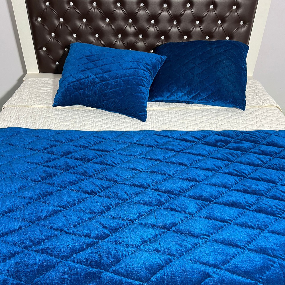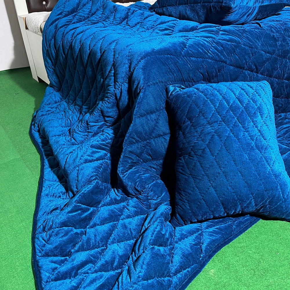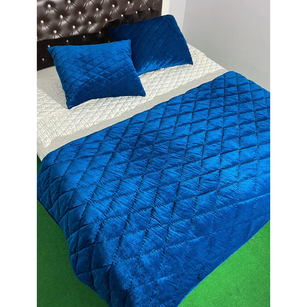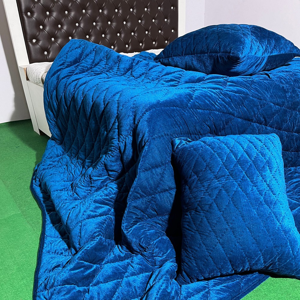 Welcome to Surya Handicraft Wrap yourself in warmth and love with our handcrafted blankets! Experience the ultimate blend of comfort and elegance with our Blanket Diamond Stitch Velvet Royal Blue Quilt. Crafted by Surya handicrafts, this luxurious full queen-sized blanket features a stunning diamond stitching pattern on a rich royal blue background, creating a modern aesthetic that perfectly complements any bedroom decor. Indulge in the softness of premium velvet and cotton materials, designed to provide warm insulation and a cozy feel that lasts all night long. Thoughtfully personalized to fit your unique style, this rectangular blanket measures 90 inches in both length and width, ensuring a perfect fit for your bed. It boasts a thread count of 801-999, ensuring a high-quality, dense weave that's both durable and comfortable. The blanket is easy to care for and is dry clean only, maintaining its luxurious appearance with minimal effort. Enhance your sleeping experience with this exquisite piece that brings a touch of luxury to your everyday rest. Each one is meticulously made with care and attention to detail, ensuring a unique and high-quality addition to your home. Made from soft, premium materials, our blankets offer both comfort and style. Ideal for cozying up on the couch, adding a touch of elegance to your bedroom, or as a thoughtful gift for loved ones. Handmade with Love: Each blanket is individually crafted, making every piece one-of-a-kind. Enhance your living space with a blanket that?s as unique as you are. Order yours today and experience the warmth of handmade quality Details #1 - Available in multiple sizes. Please select the size #2 - Stitching: Pure Hand Stitch #3 - Spot cleaning #4 - Light Cotton stuffing #5 - Delivered within 4 To 6 business days Measurement Multiple size available US Bedding sizes includes Lap /Twin/Full/Queen/King Customized sizes and color are available, please #1 - 40x50 - inch Lap Quilt #2 - 66x88 - inch Twin quilt #3 - 90x90 - inch Queen quilt - Weighs about 5.6 pounds (about 2.7 kilograms ) #4 - 90x104 - inch King quilt #5 - 92x108 - inch California King quilt #6 - 20X26 - 2 Euro sham #7 - 26X26 - 2 Euro sham Customizatio n You can get your choice of color for cotton. If you like a customized throw blankets or have any questions about the product, please send me a message and I will be happy to work on it. NOTE # BUYER WILL BE RESPONSIBLE FOR ANY RETURN COST