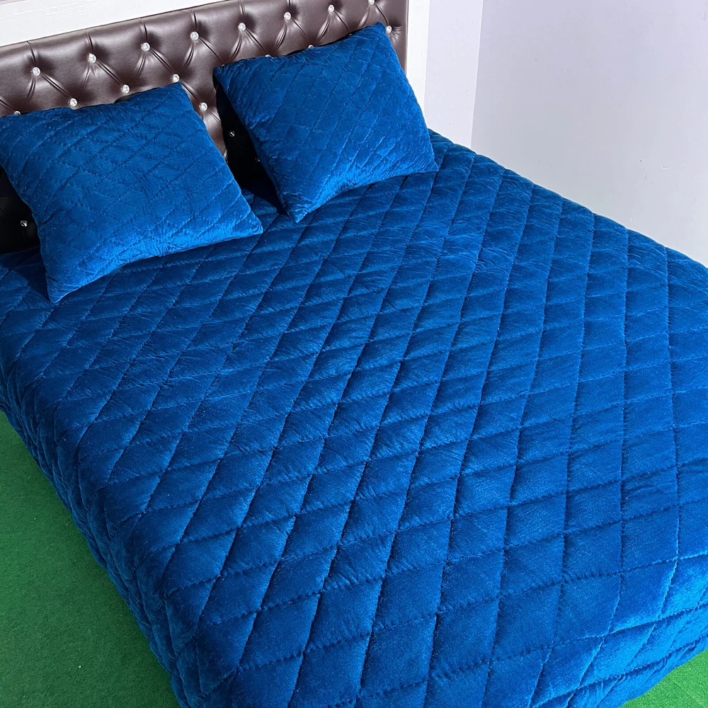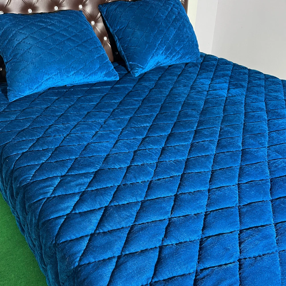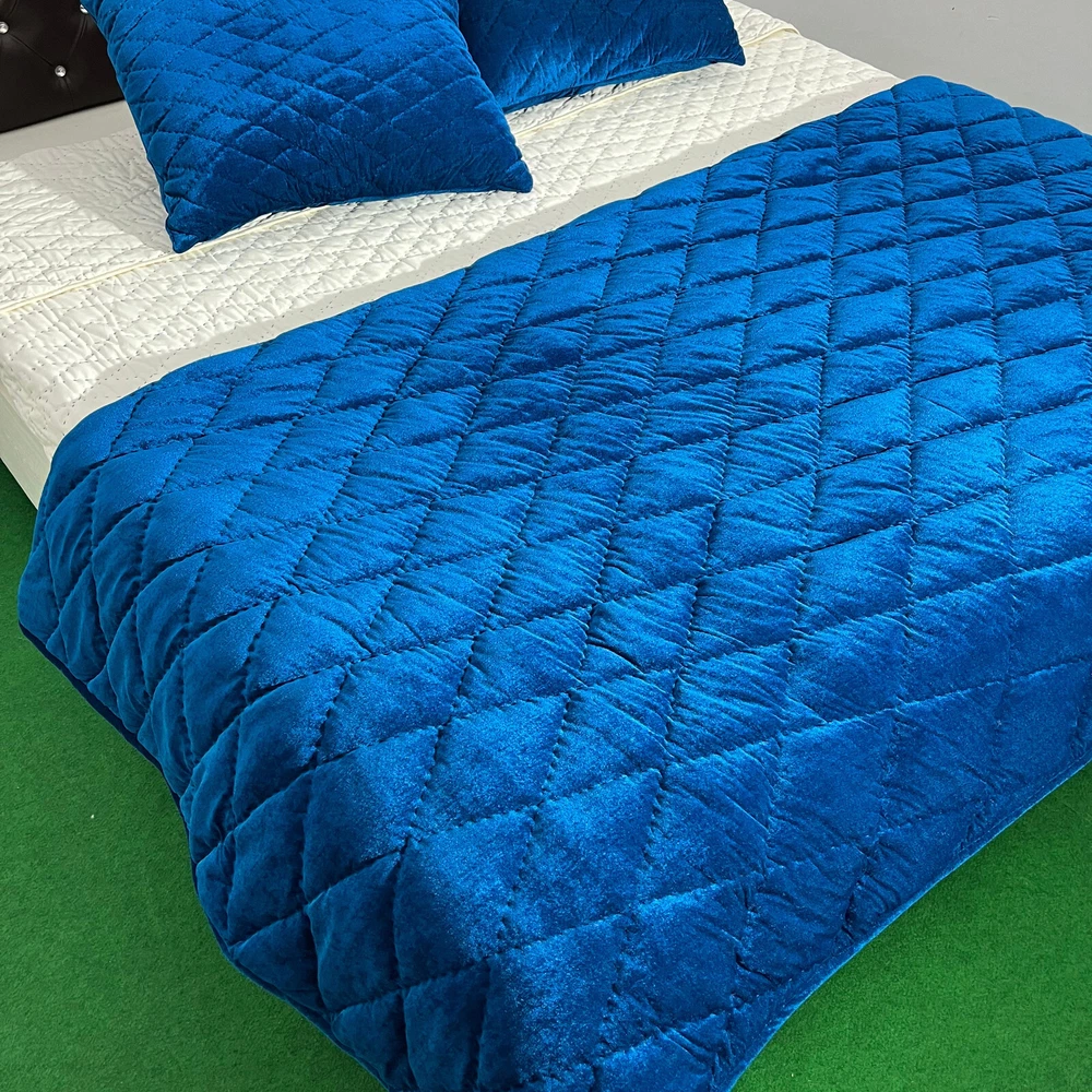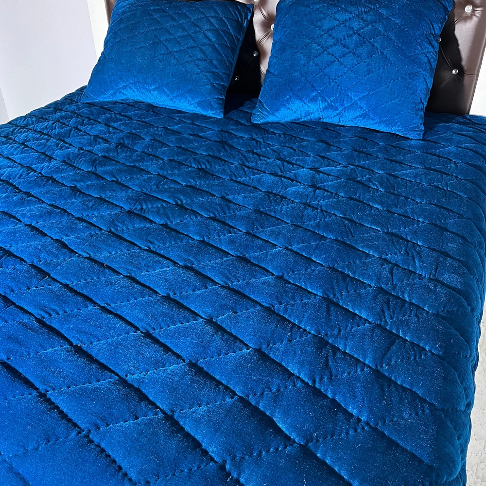 Welcome to Surya Handicraft Wrap yourself in warmth and love with our handcrafted blankets! Experience the ultimate blend of comfort and elegance with our Blanket Diamond Stitch Velvet Royal Blue Quilt. Crafted by Surya handicrafts, this luxurious full queen-sized blanket features a stunning diamond stitching pattern on a rich royal blue background, creating a modern aesthetic that perfectly complements any bedroom decor. Indulge in the softness of premium velvet and cotton materials, designed to provide warm insulation and a cozy feel that lasts all night long. Thoughtfully personalized to fit your unique style, this rectangular blanket measures 90 inches in both length and width, ensuring a perfect fit for your bed. It boasts a thread count of 801-999, ensuring a high-quality, dense weave that's both durable and comfortable. The blanket is easy to care for and is dry clean only, maintaining its luxurious appearance with minimal effort. Enhance your sleeping experience with this exquisite piece that brings a touch of luxury to your everyday rest. Each one is meticulously made with care and attention to detail, ensuring a unique and high-quality addition to your home. Made from soft, premium materials, our blankets offer both comfort and style. Ideal for cozying up on the couch, adding a touch of elegance to your bedroom, or as a thoughtful gift for loved ones. Handmade with Love: Each blanket is individually crafted, making every piece one-of-a-kind. Enhance your living space with a blanket that?s as unique as you are. Order yours today and experience the warmth of handmade quality Details #1 - Available in multiple sizes. Please select the size #2 - Stitching: Pure Hand Stitch #3 - Spot cleaning #4 - Light Cotton stuffing #5 - Delivered within 4 To 6 business days Measurement Multiple size available US Bedding sizes includes Lap /Twin/Full/Queen/King Customized sizes and color are available, please #1 - 40x50 - inch Lap Quilt #2 - 66x88 - inch Twin quilt #3 - 90x90 - inch Queen quilt - Weighs about 5.6 pounds (about 2.7 kilograms ) #4 - 90x104 - inch King quilt #5 - 92x108 - inch California King quilt #6 - 20X26 - 2 Euro sham #7 - 26X26 - 2 Euro sham Customizatio n You can get your choice of color for cotton. If you like a customized throw blankets or have any questions about the product, please send me a message and I will be happy to work on it. NOTE # BUYER WILL BE RESPONSIBLE FOR ANY RETURN COST