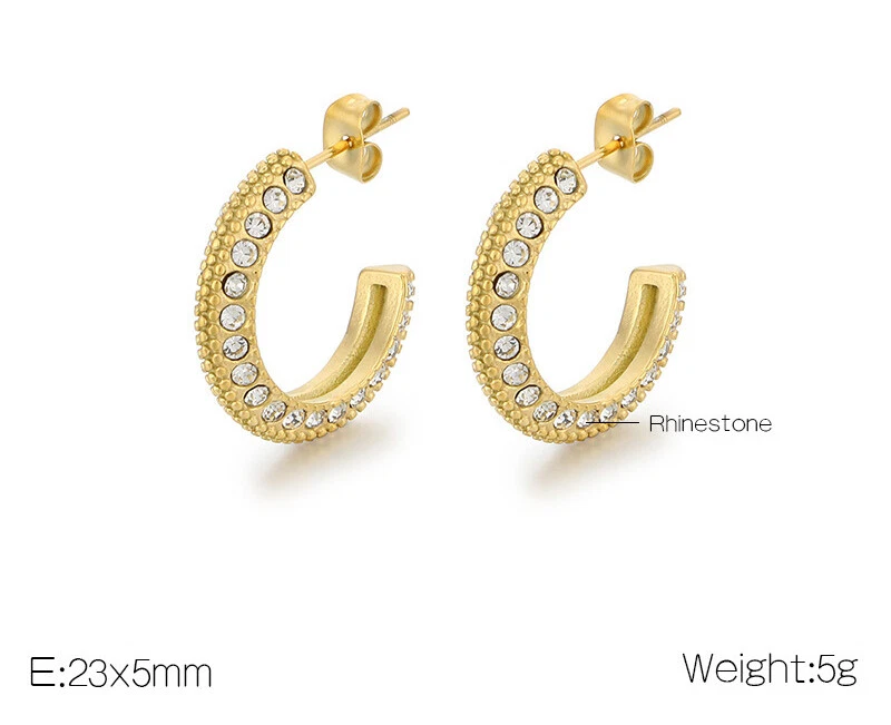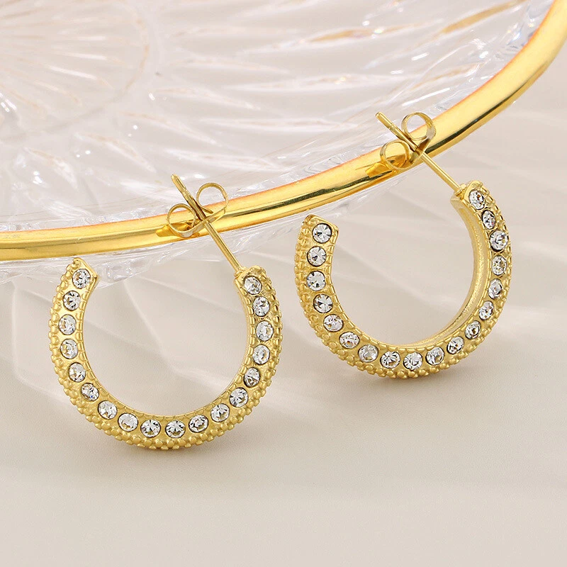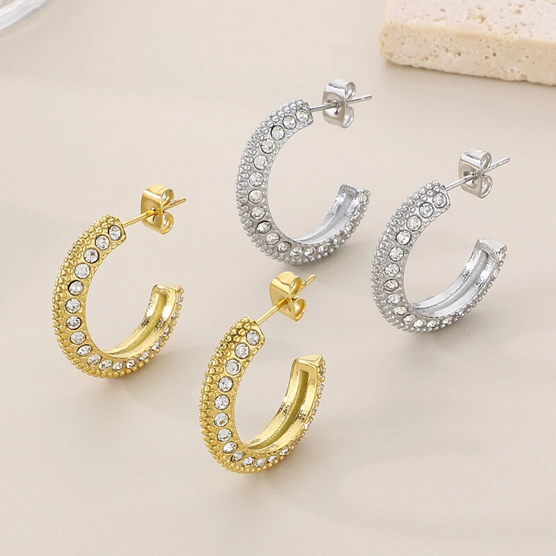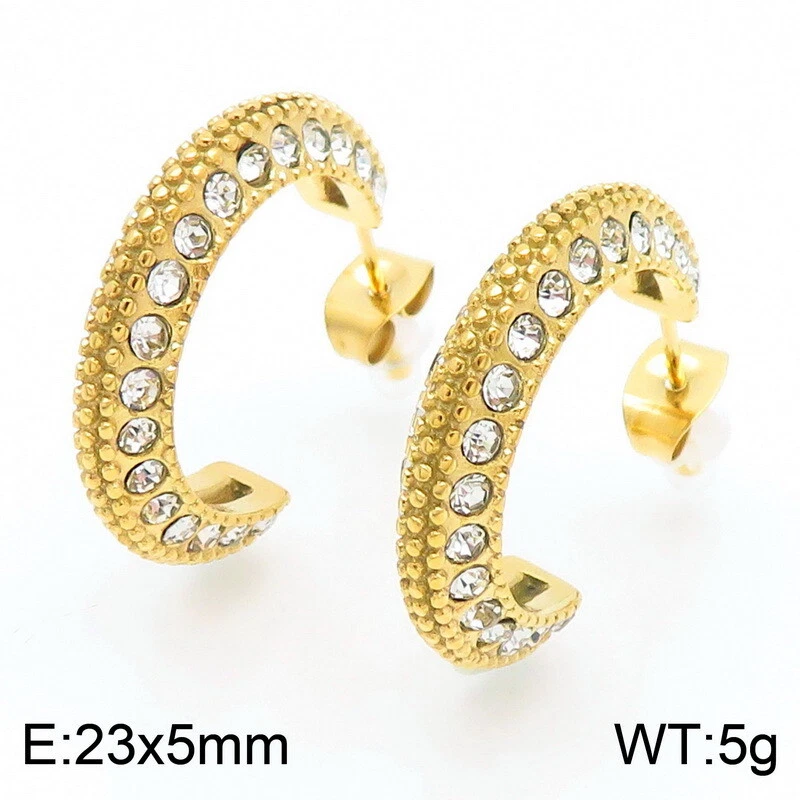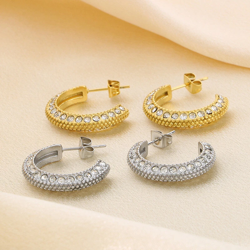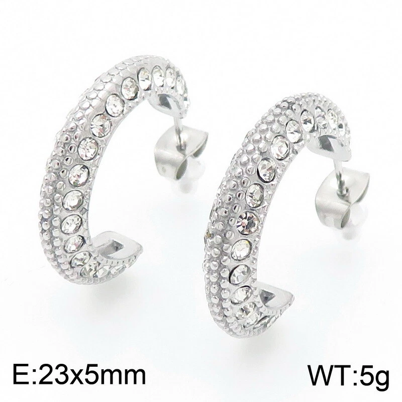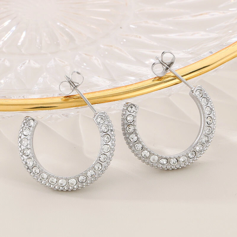 Diamond set C-shaped stainless steel titanium steel high earrings for women