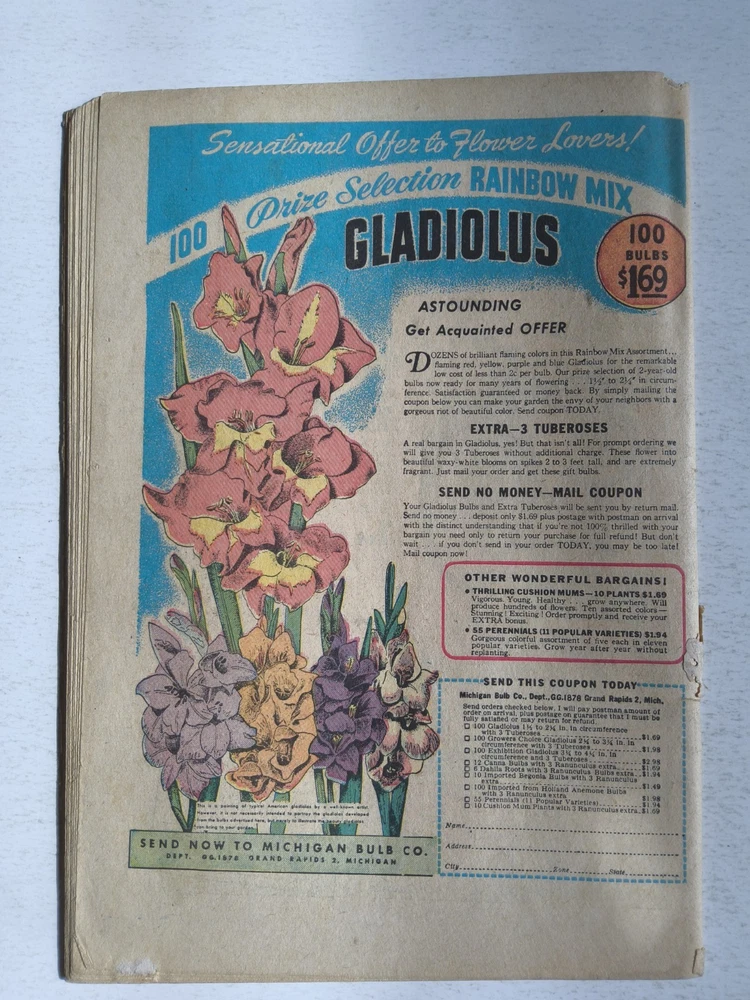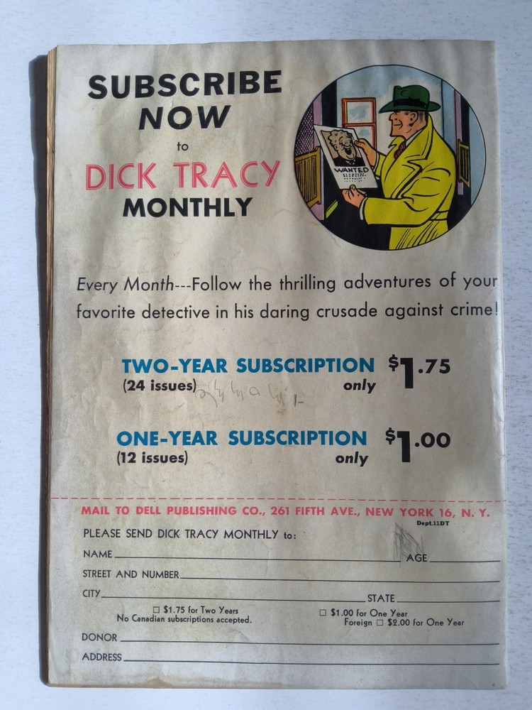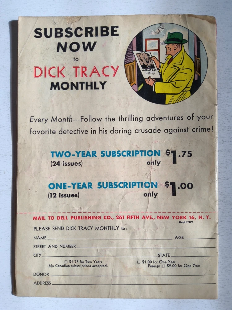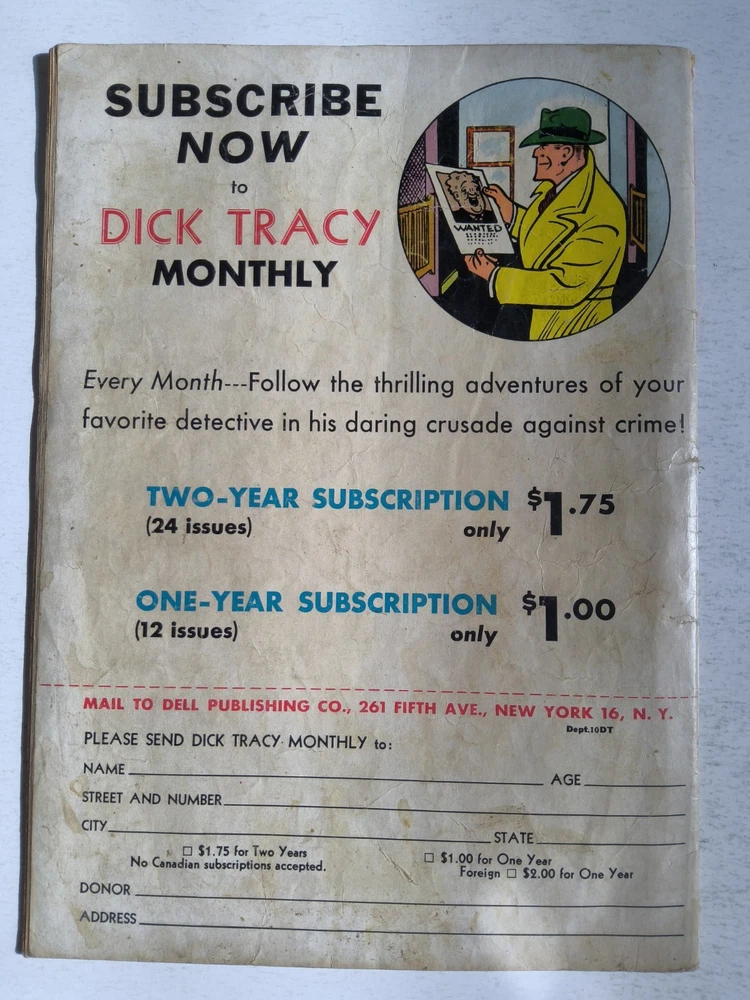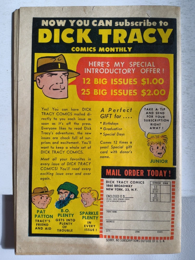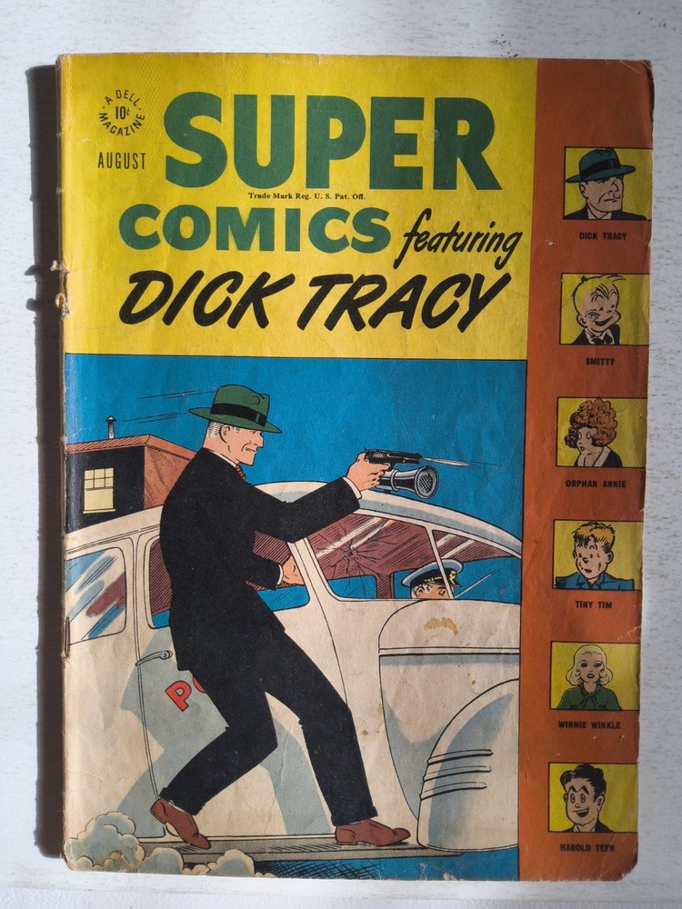 The Dick Tracy Monthly Lot includes 9 vintage comic books from 1947 to 1949, featuring the iconic character Dick Tracy created by artist/writer Chester Gould. These pre-code Golden Age comics are part of the US Comics tradition, with cover art by Chester Gould himself. With a grade range of Good to Very Good, this mixed lot is a must-have for collectors of classic comic books, offering a glimpse into the early years of the Dell universe and the general audience that enjoyed these first printings. *Includes #10 #11 #12 #27 #28 #29 #87 #109 #111 Super Comics issue - All Complete, lots of reading wear, spine wear, creasing and ticks. Brittleness on edges and tears but great readers see pictures - Bagged and boarded - Shipped with Gemini packing to insure no damage during shipping - Usps Priority Check out our 1000s of comics in our store We combine shipping