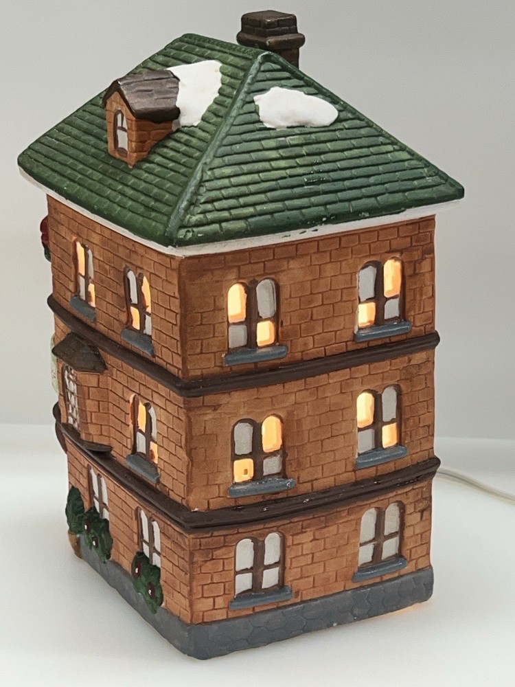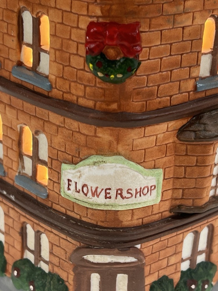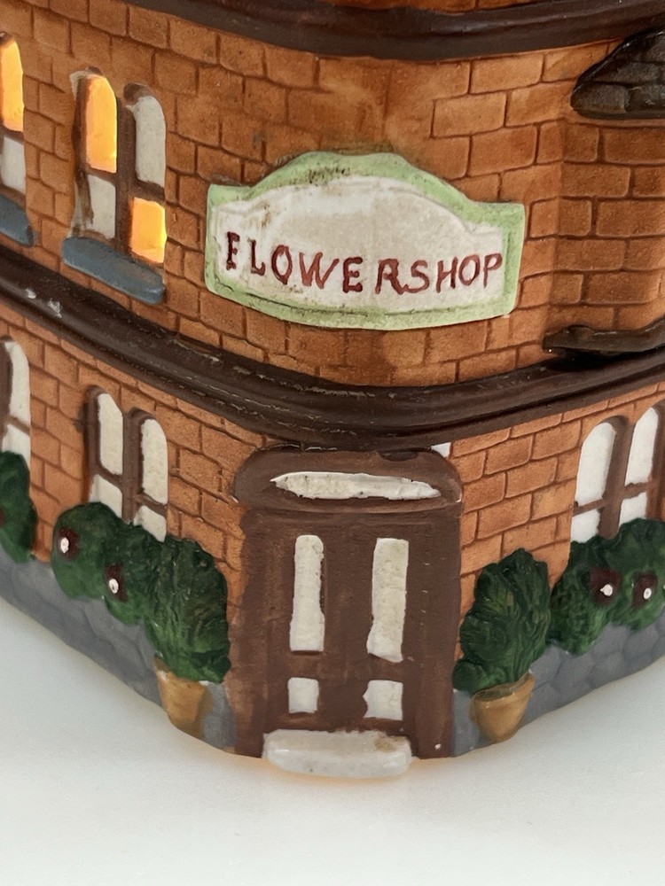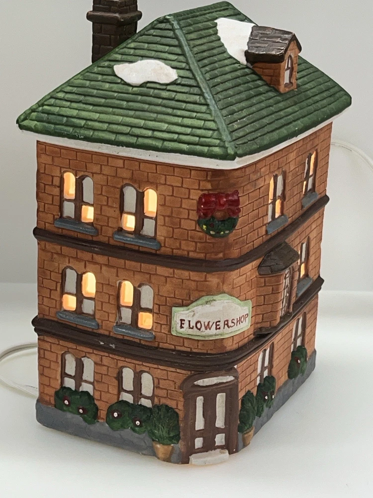 The Dickens Collectables Village House Holiday Expressions FLOWER SHOP Illuminated is a medium-sized, asymmetrical village house collectible manufactured in 1992. This contemporary piece features a multicolor flower shop design with a matte finish, perfect for any room in your home. Made of porcelain, this original piece from the late 20th century is part of the Holiday Expressions collection and would make a lovely addition to your holiday village display. Perfect condition , no original box , comes with light & cord