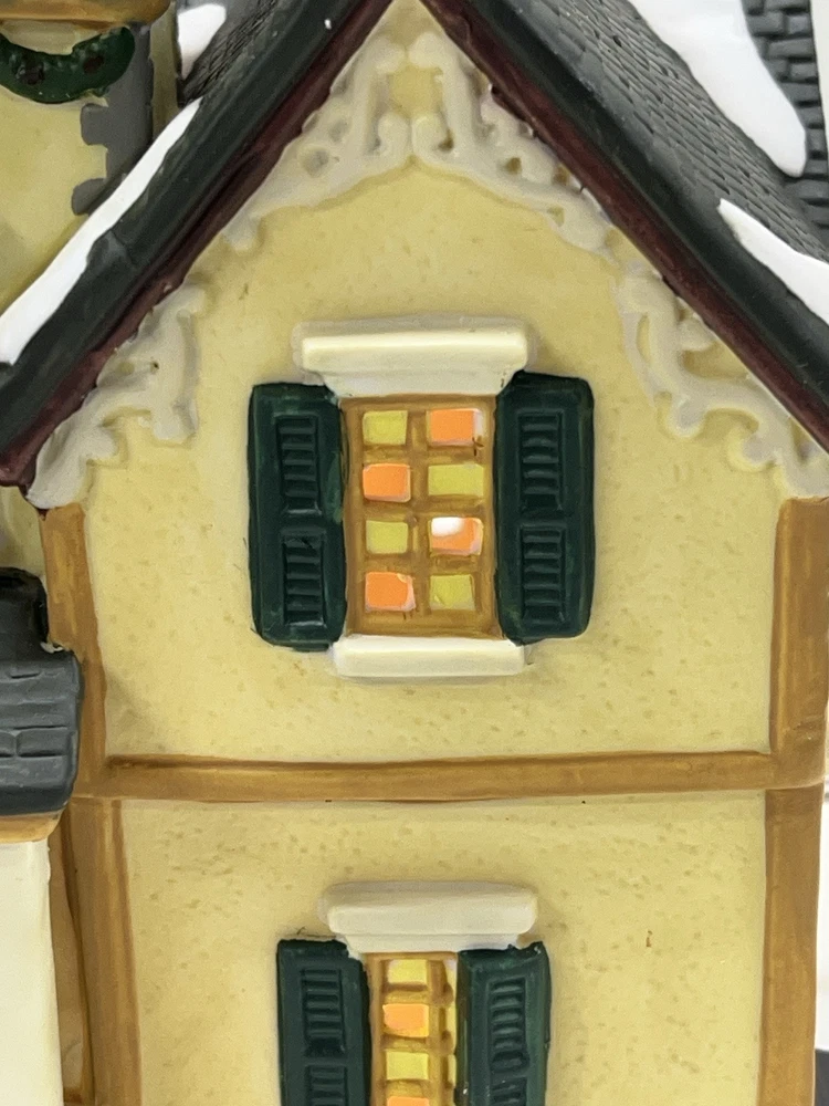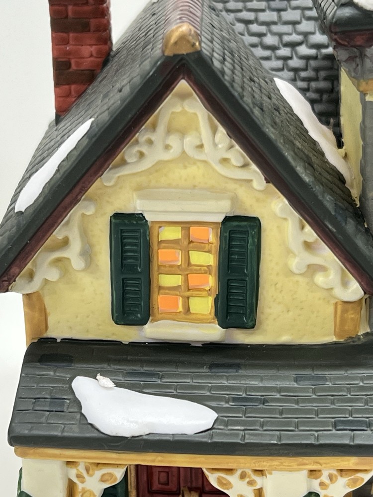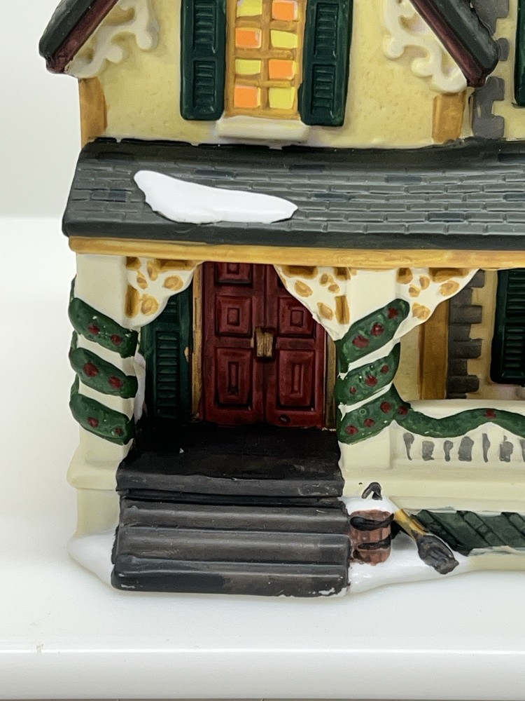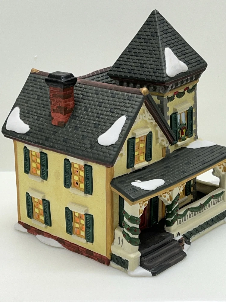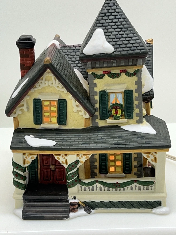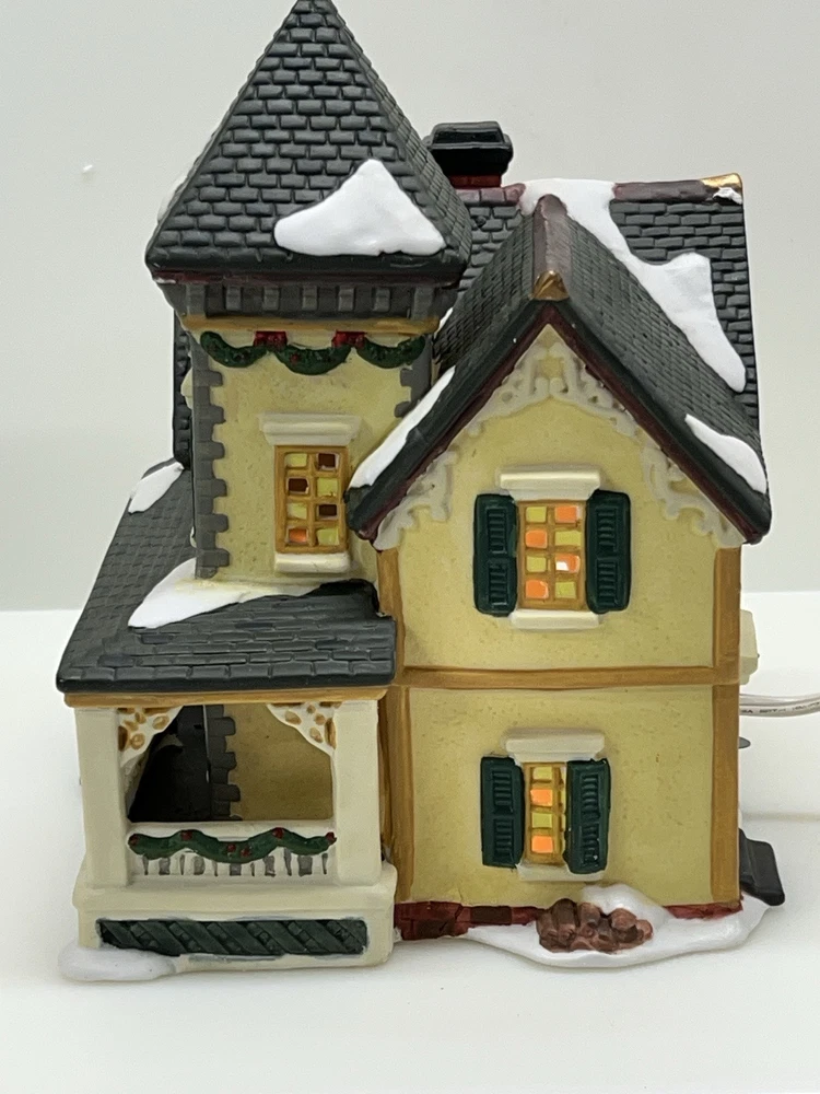 This Dickens Collectables Victorian Series Porcelain Lighted House is a medium-sized Victorian-style house with illuminated features. It is part of the Dickens Village collection, suitable for seasonal villages . The hand-painted house is a licensed reproduction from 1998, featuring a multicolor Victorian design. It comes boxed and is a retired item in mint condition. Perfect pristine condition! Comes with all original packaging including cord & light